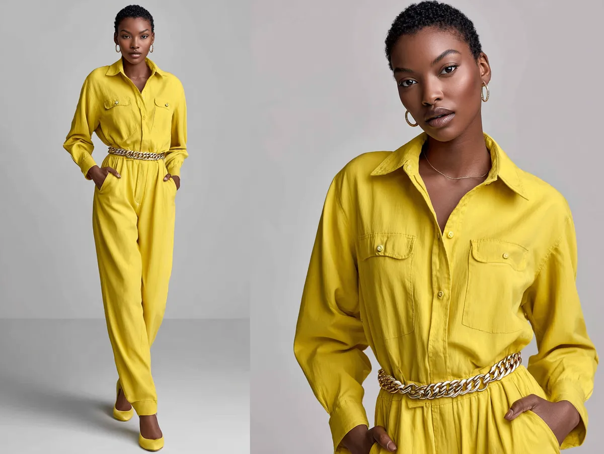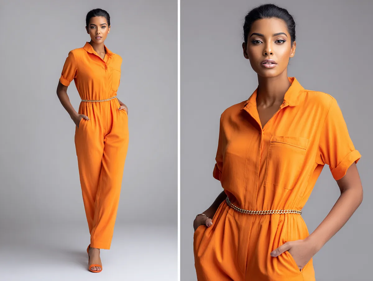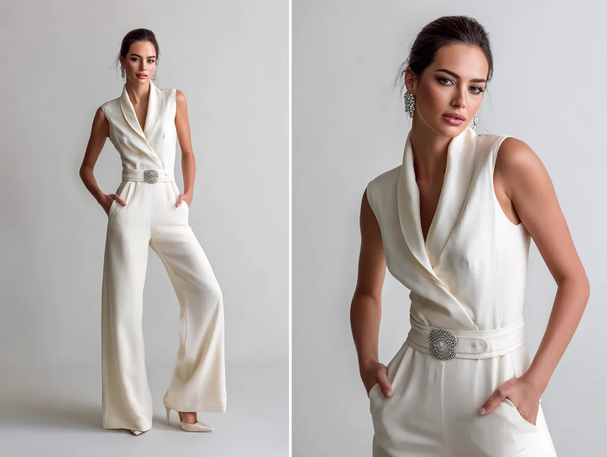 Vibrant jumpsuits in bold colors like red or emerald green bring festive cheer to your wardrobe. When paired with a gold chain belt, these outfits radiate sophistication and confidence. The metallic sheen of the belt contrasts beautifully with the fabric of the jumpsuit, adding depth and texture to your look.