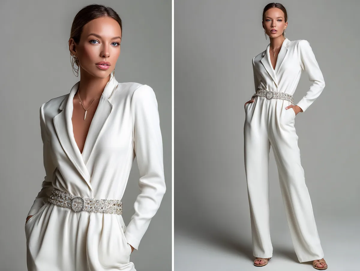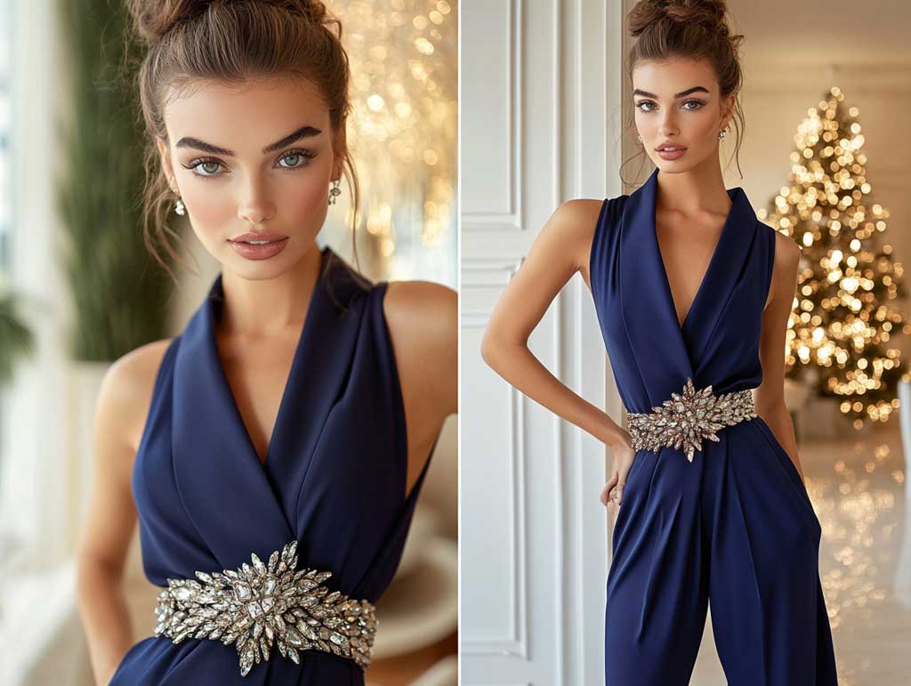Jumpsuits paired with crystal-embellished belts exude timeless elegance, making them perfect for festive occasions. A navy-blue jumpsuit, for instance, provides a sophisticated canvas for the shimmering brilliance of a crystal belt. This combination effortlessly catches the light, drawing attention to your waistline while maintaining a sleek and polished appearance.