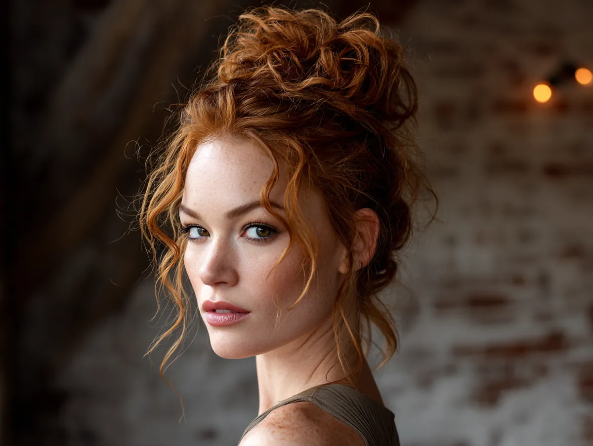 Accessories can highlight the fiery undertones. Gold or bronze clips complement the warmth, while earthy floral accents can create a bohemian finish. Messy updos for medium hair adapt easily to different moods — from relaxed weekend gatherings to celebratory evenings. The copper shade amplifies this adaptability, offering a striking look without requiring excessive effort.