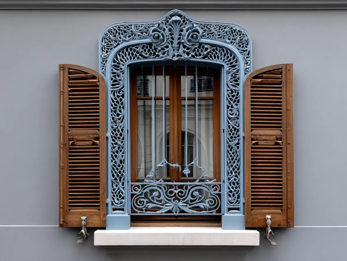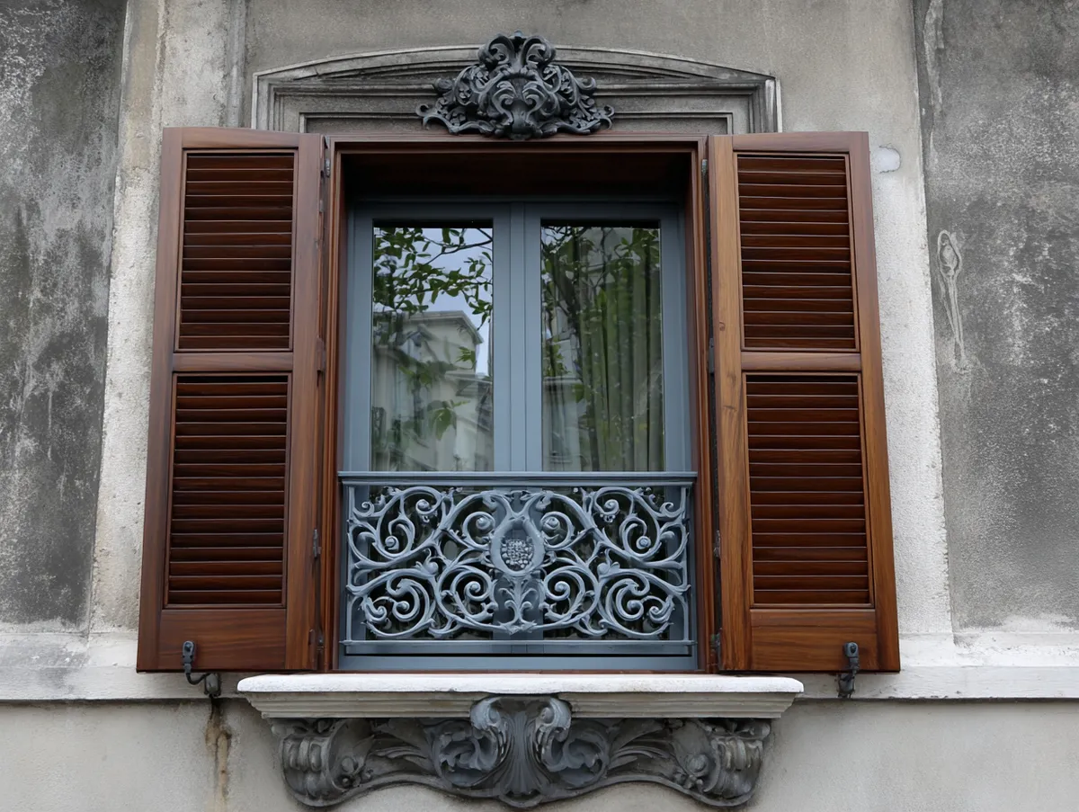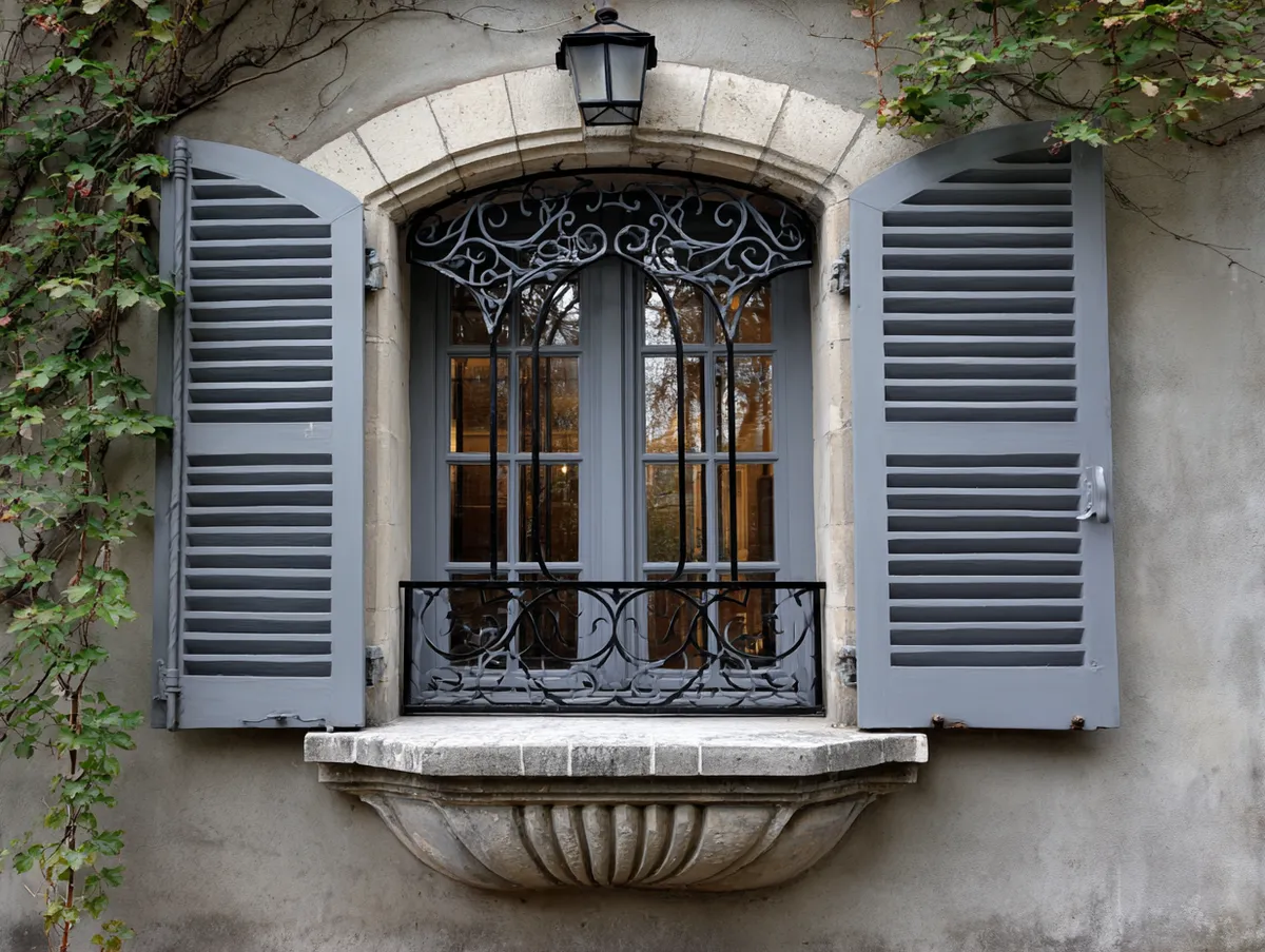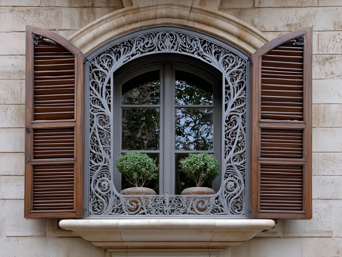 French casement windows are renowned for their romantic elegance. These windows feature two sashes that swing outwards from the center, creating a wide opening and providing a clear, panoramic view. This view, along with the delicate iron grillwork, introduces an element of grandeur to the house front.