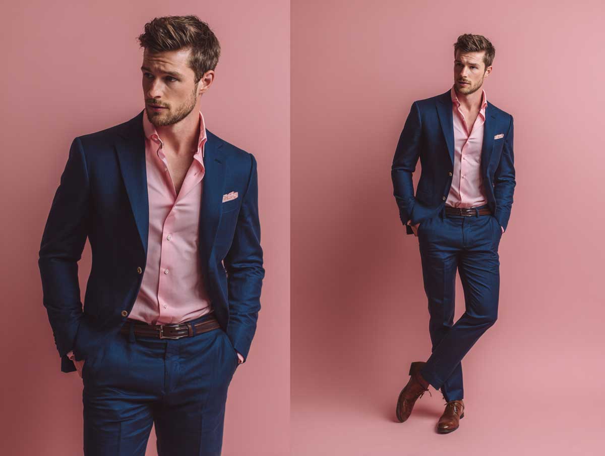 Navy blue and dusty pink might not be the most obvious pairing, but when used in menswear, they unlock a world of unexpected charm and visual sophistication. Whether dressed up with a blazer and tailored pants, styled casually with a bomber and cargo combo, or blended through texture with knits and pinstripes, these colors invite fresh ways to celebrate. Each combination above showcases how men can embrace their personal style while honoring a special occasion. The key lies in the balance—structure and softness, subtlety and boldness—curated to leave a lasting impression.
