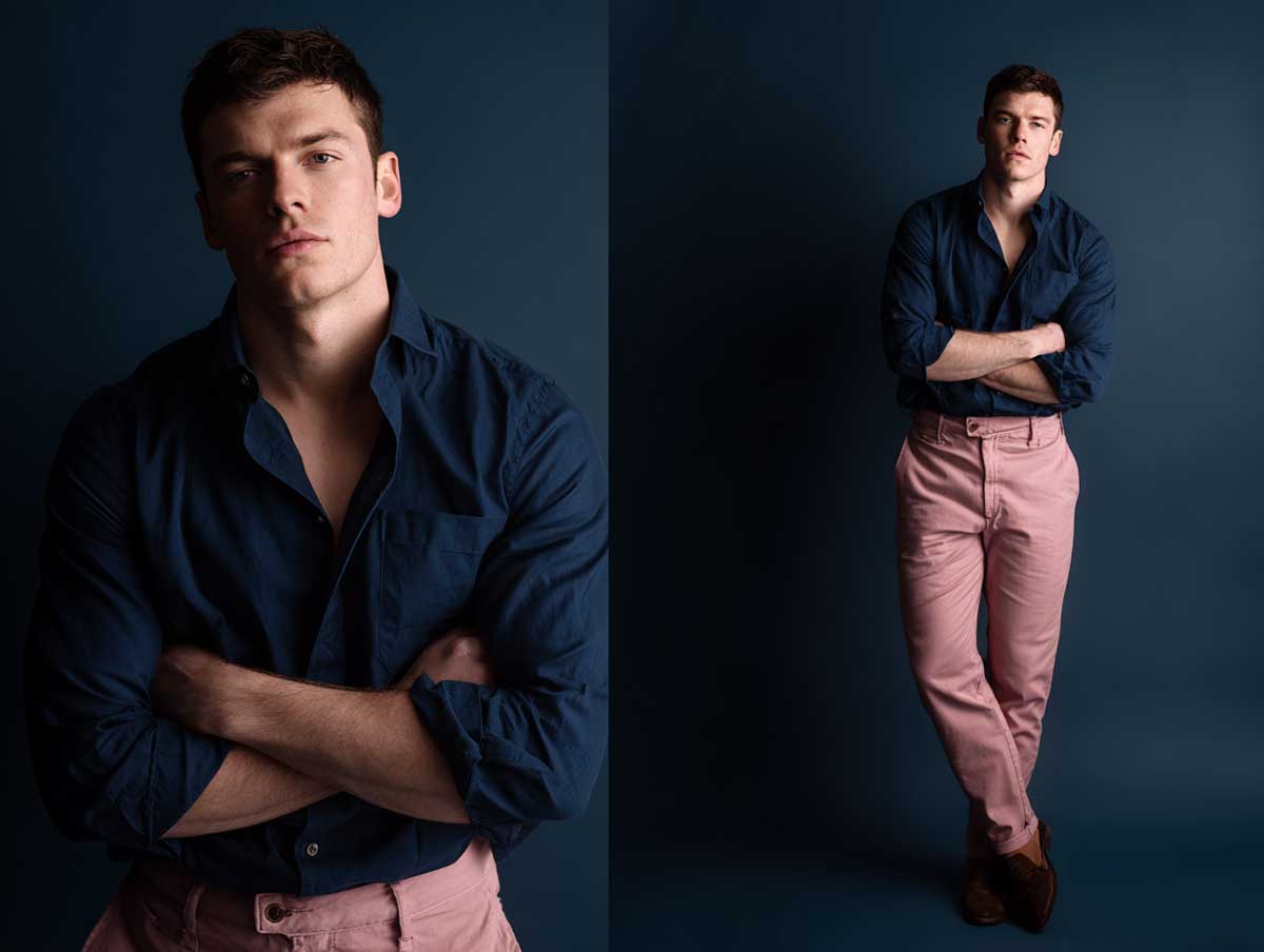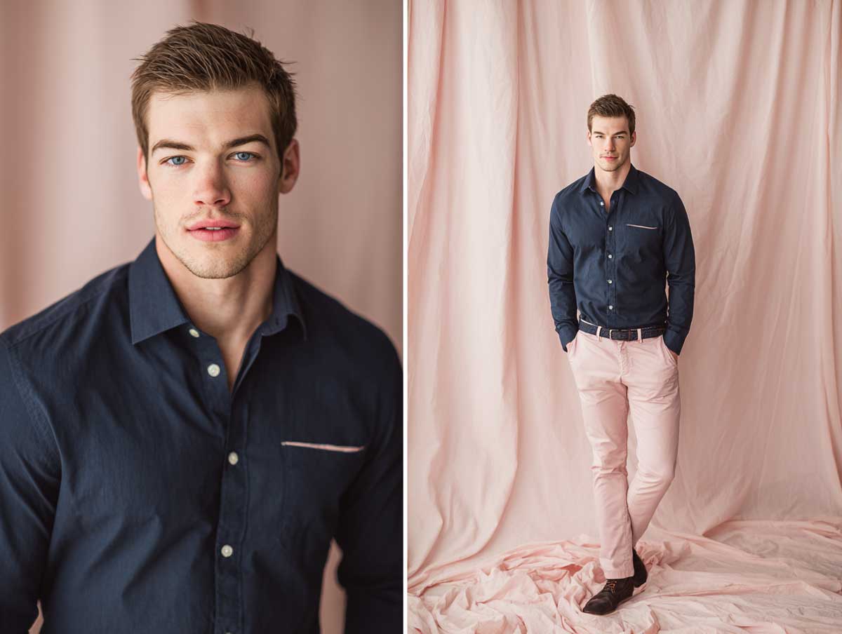 Mens Birthday Outfit Ideas with Navy Blazer and Dusty Pink Trousers