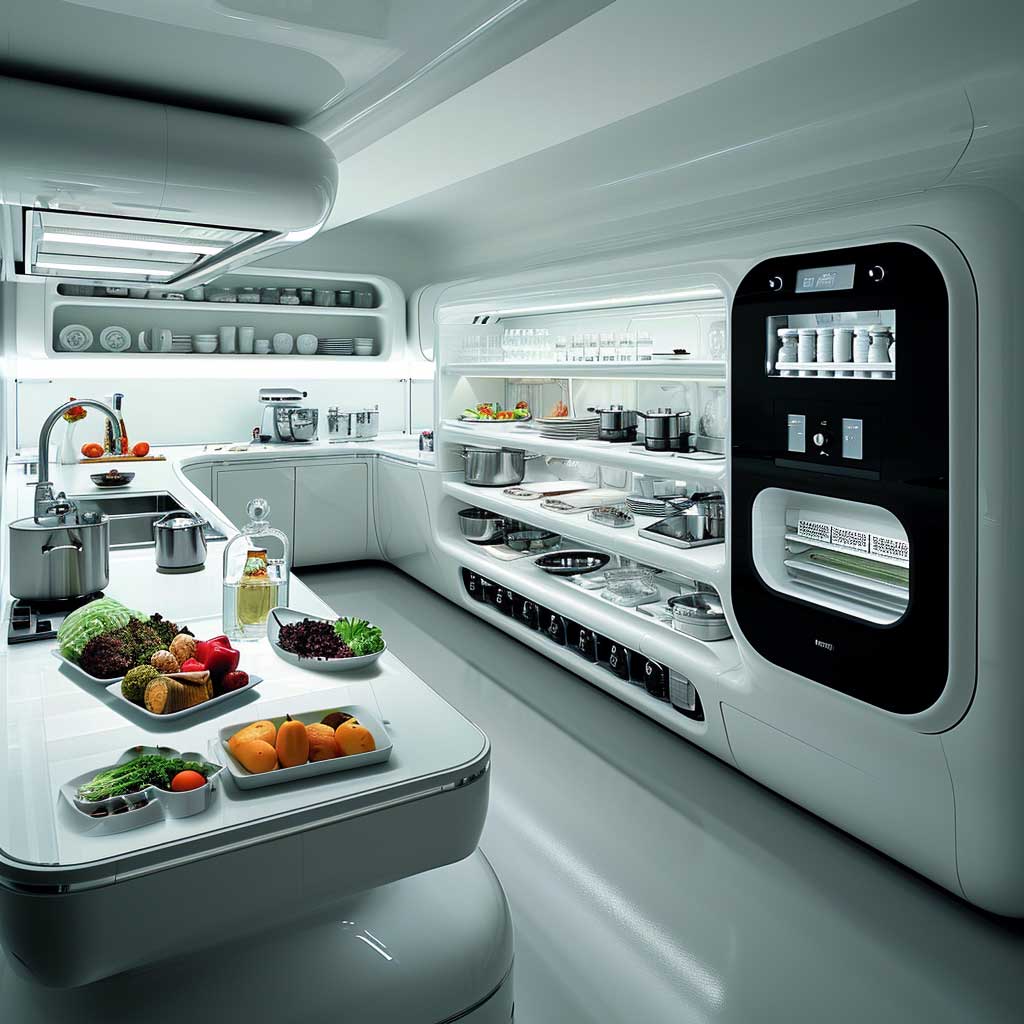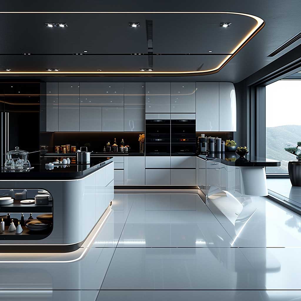 High-tech appliances are a staple in these kitchens, offering both efficiency and a sleek design. Smart refrigerators that can keep track of groceries and expiration dates, ovens that can be controlled remotely, and induction cooktops that offer precision cooking are just a few examples of how technology is being integrated into the kitchen.