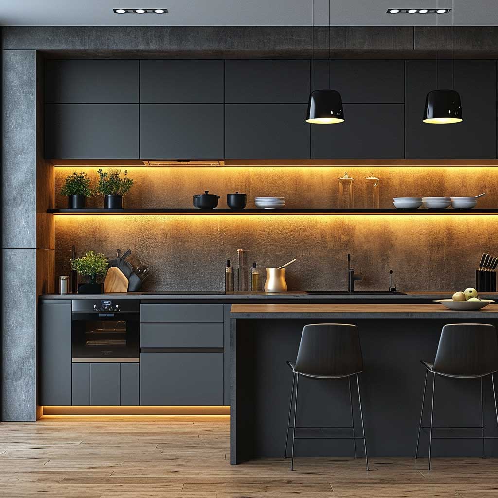 Smart lighting systems play a significant role in these kitchens. They not only provide the necessary task lighting but can also be adjusted to create the perfect ambiance for any occasion. Energy-efficient appliances and fixtures are chosen not just for their functionality but also for their contribution to a sustainable lifestyle.