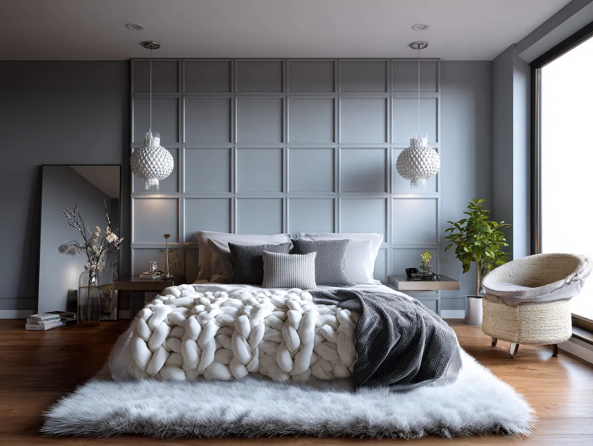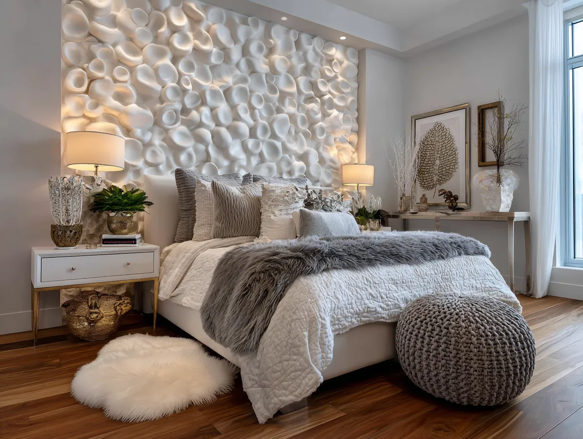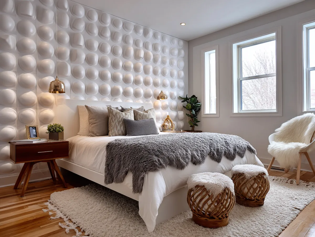 An accent wall can dramatically change the look of a room. In this case, the PVC panel accent wall adds depth and interest to the bedroom, turning an ordinary wall into an extraordinary design element.