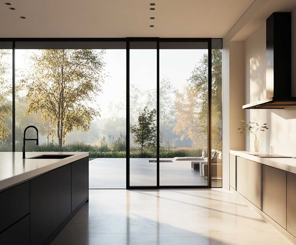 Minimalist Glass Kitchen Door Design for an Open-Concept Space