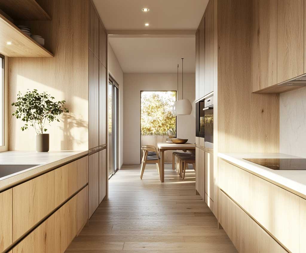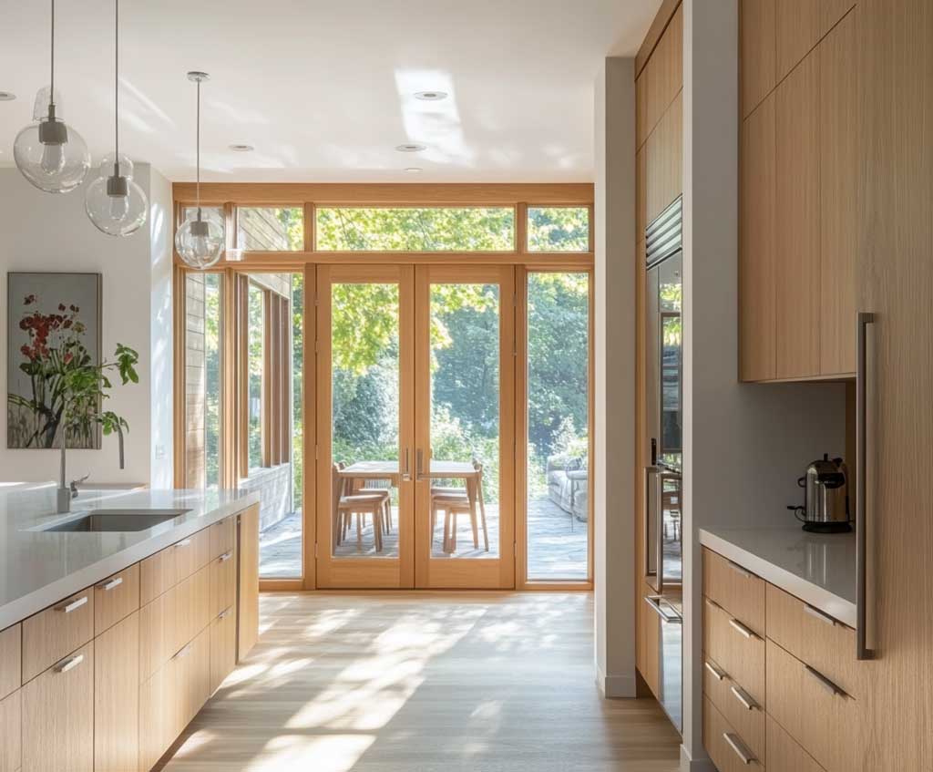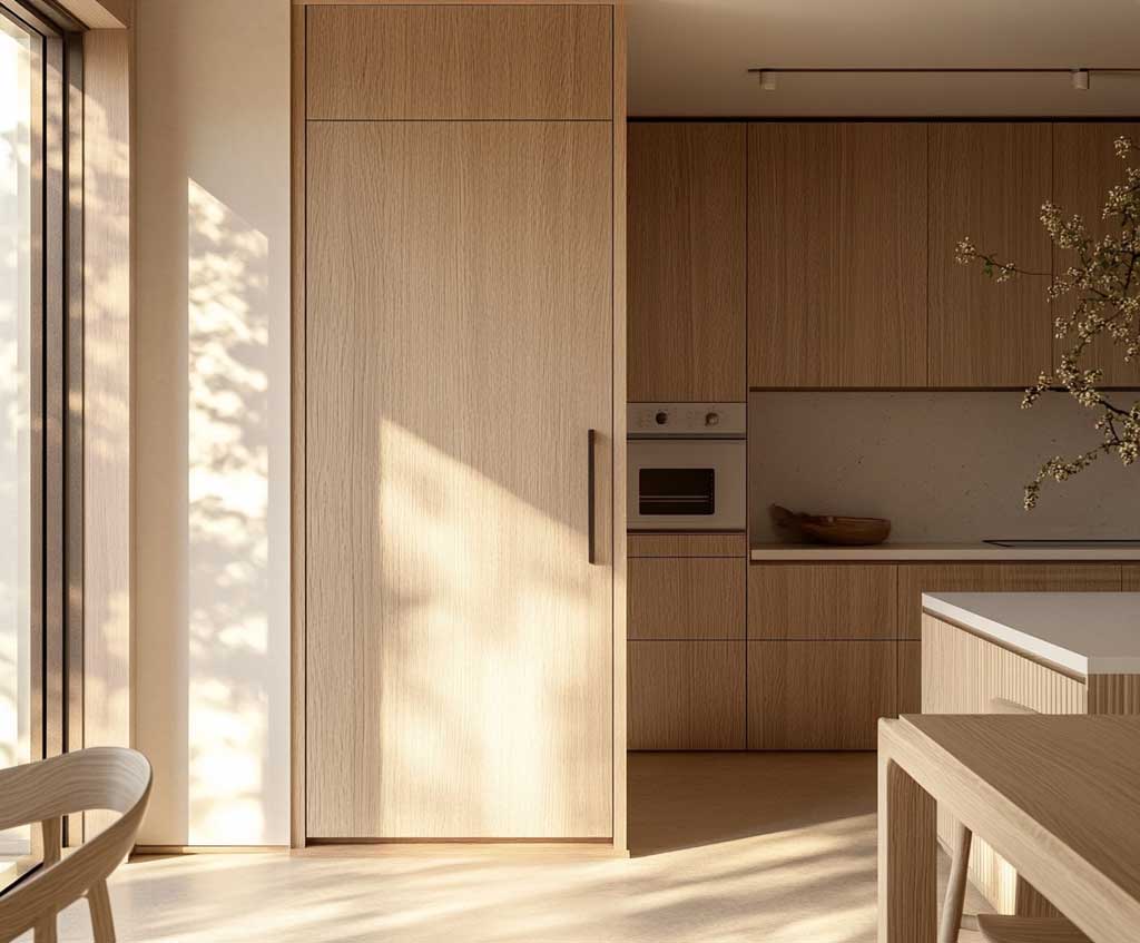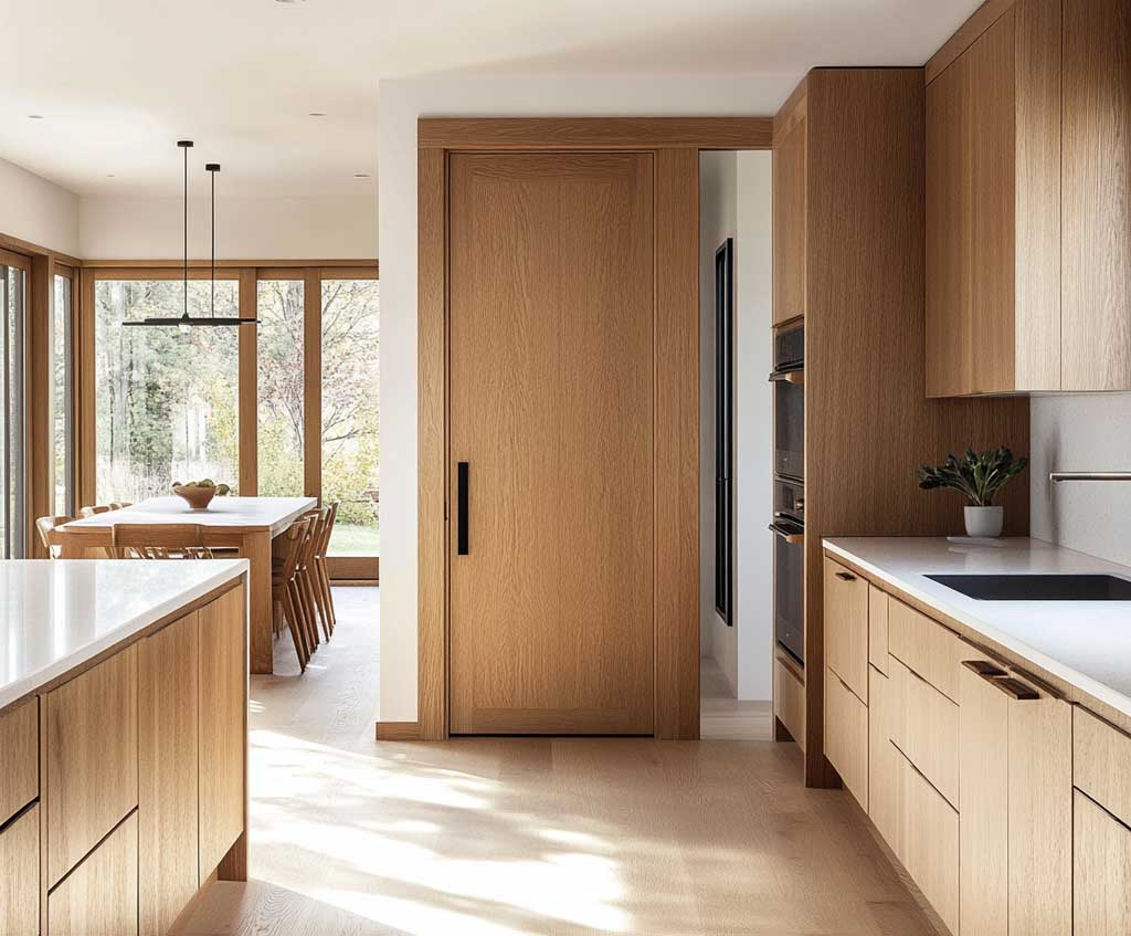 Contemporary Wood Kitchen Door Design for a Warm Minimalist Touch
