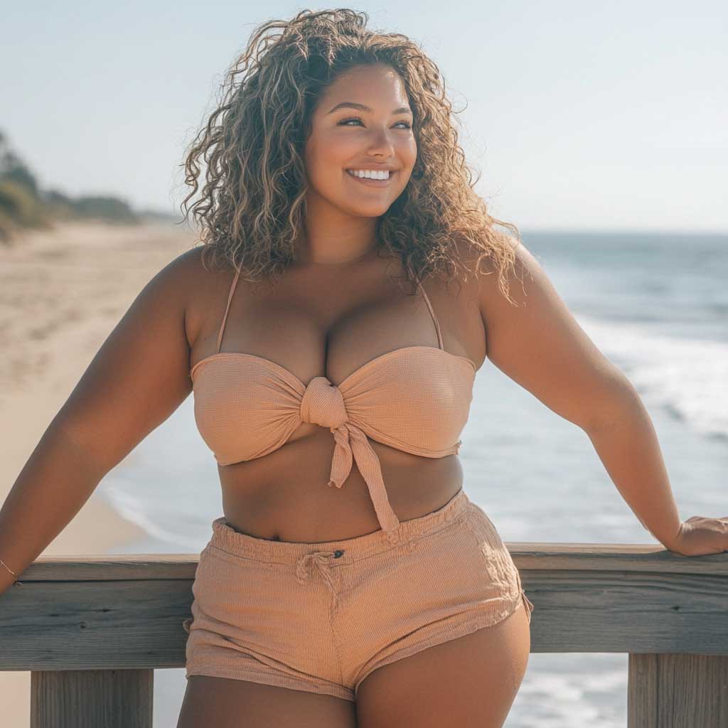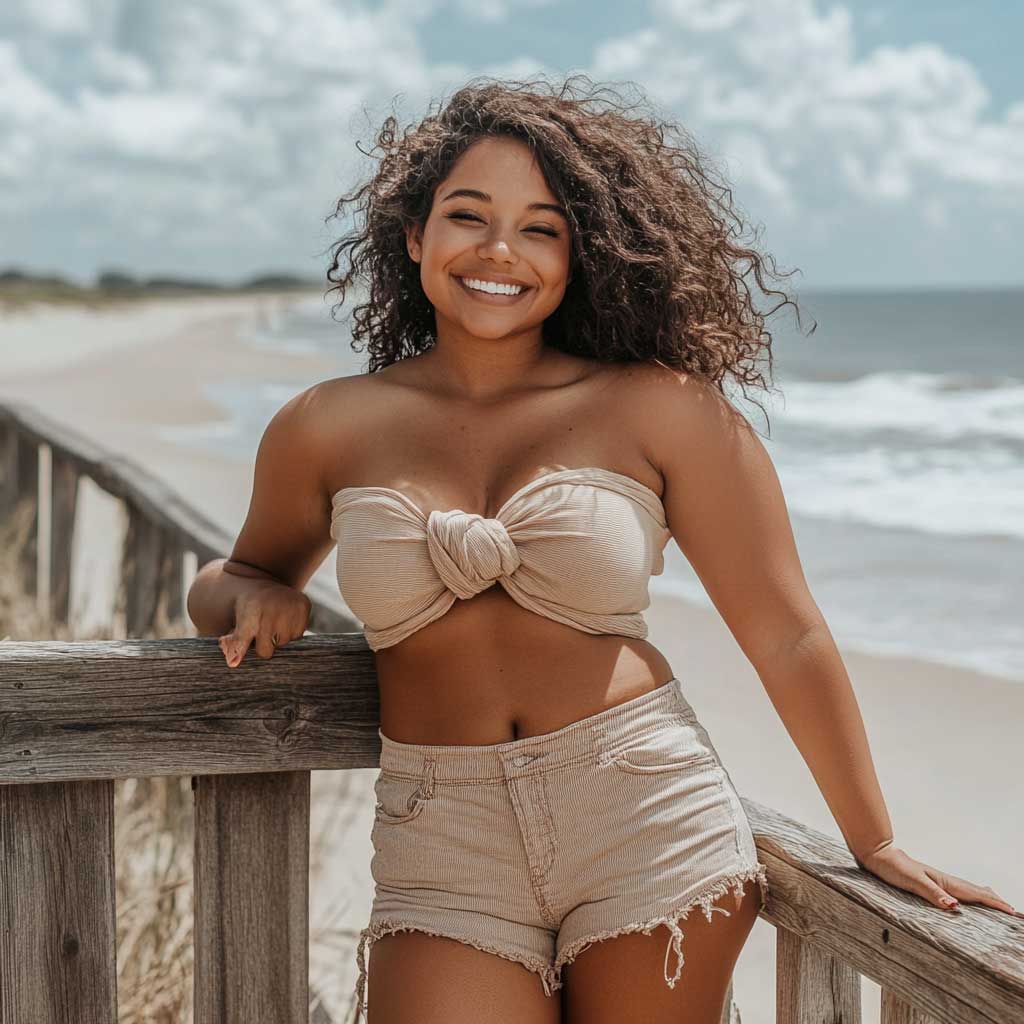 A knotted crop top is a versatile summer piece that effortlessly blends casual style with a touch of chic. For plus-size ladies, this top offers the perfect opportunity to highlight your waist while keeping the look relaxed and comfortable. When paired with high-waisted linen shorts, the knotted crop top creates an outfit that’s ideal for everything from beach days to casual outings.