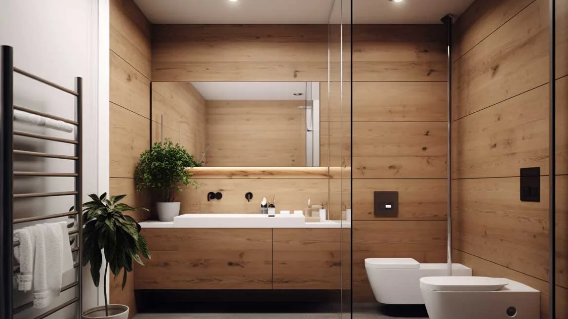 - Mixed Wood Tones: Combine different wood tones to create an elegant and sophisticated design. Light and dark wood panels can be arranged in a geometric pattern, adding visual interest to your modern bathroom.