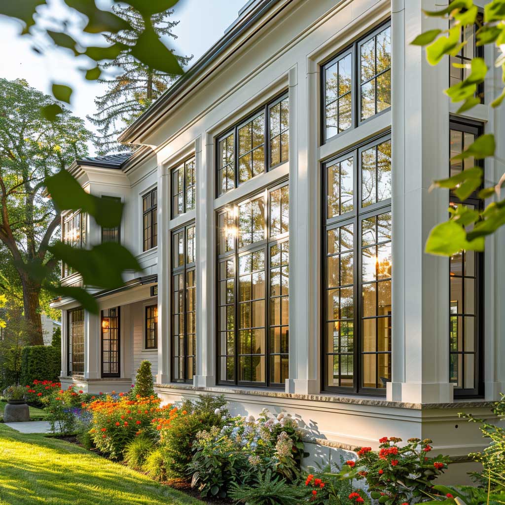 By choosing black exterior window framing with a vintage touch, homeowners can achieve a sophisticated, timeless look that enhances the architectural beauty of their modern classic home. The bold, elegant frames provide a perfect balance between historic charm and contemporary style, creating a unique and captivating facade.