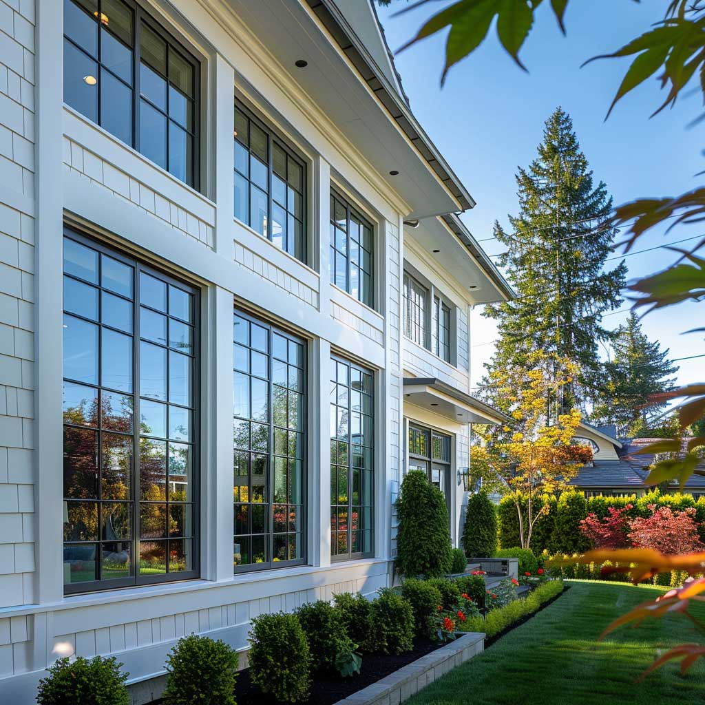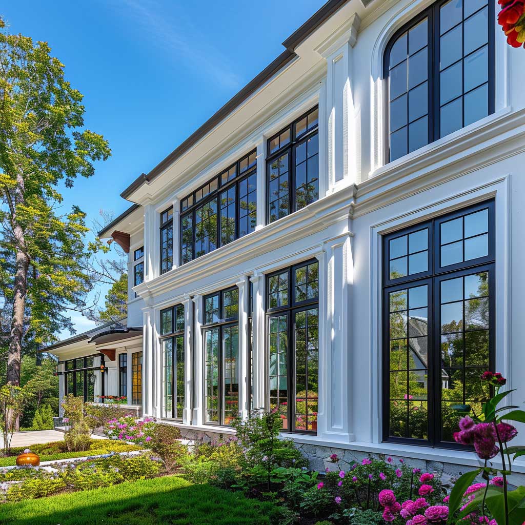 White exterior window framing is a staple in modern classic architecture, offering a clean, timeless appeal that never goes out of style. The bright, crisp lines of white framing create a striking contrast against any home exterior, enhancing the architectural details and providing a fresh, elegant look.