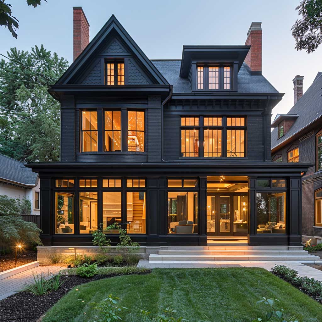 Black exterior window framing brings a touch of vintage elegance to modern classic homes, creating a striking visual contrast and adding depth to the overall design. This style is perfect for homeowners looking to combine contemporary sophistication with a hint of historic charm.