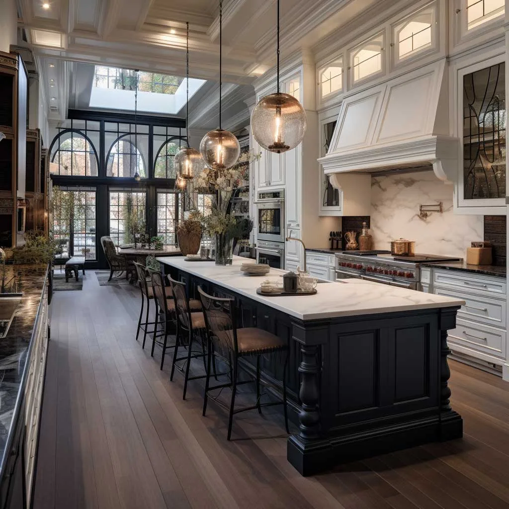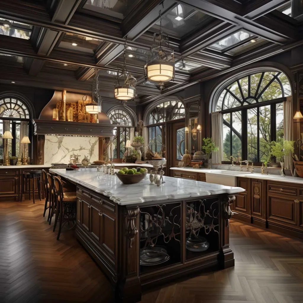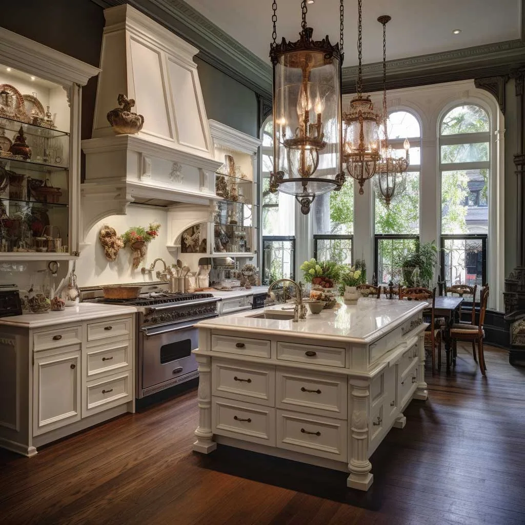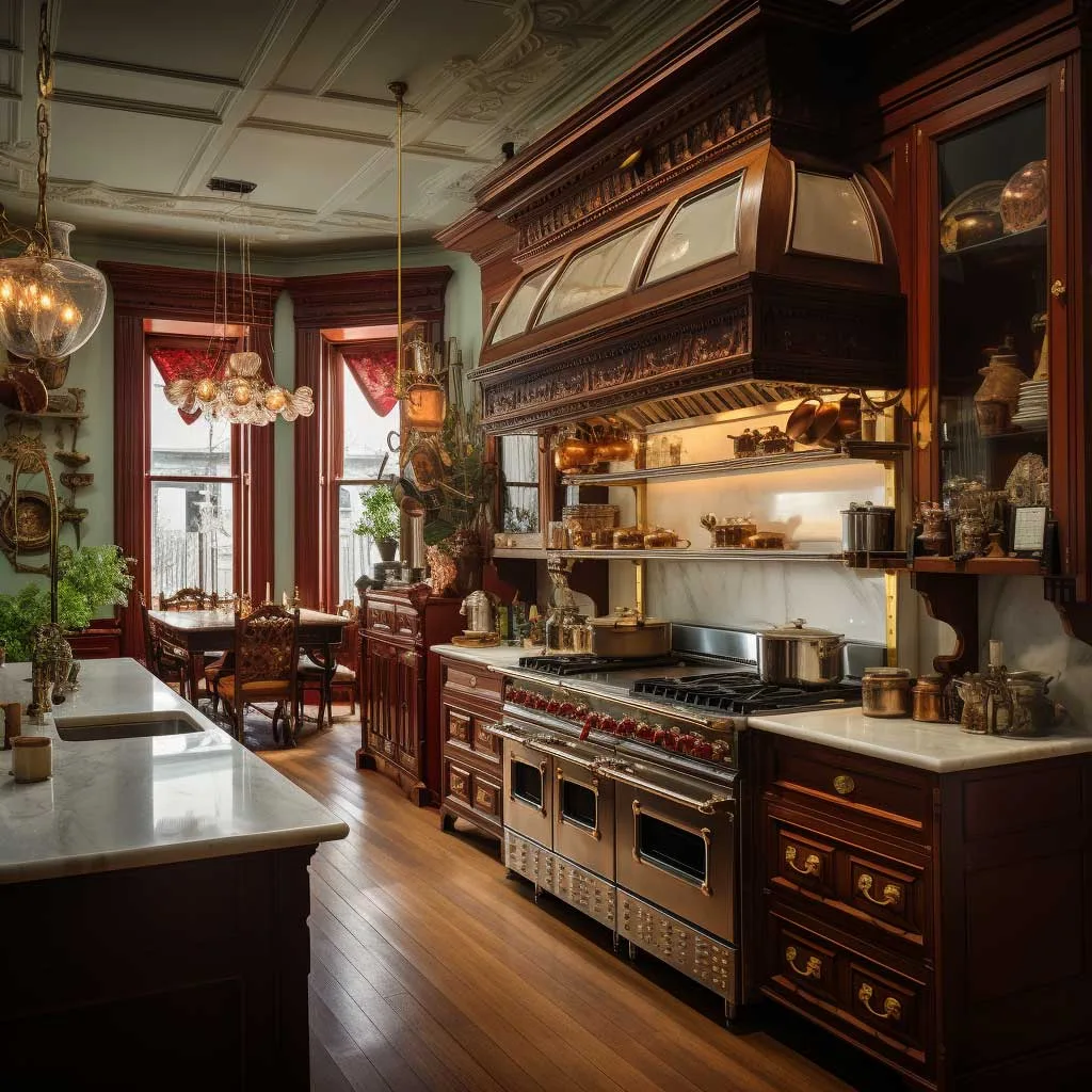 Picture, if you will, a Victorian kitchen—all high ceilings, ornate tile, and grand chandeliers. Now, picture that with modern appliances and sleek countertops. It seems to give that feel of a kitchen out of contemporary display in the frame of a Victorian kitchen of elegance.