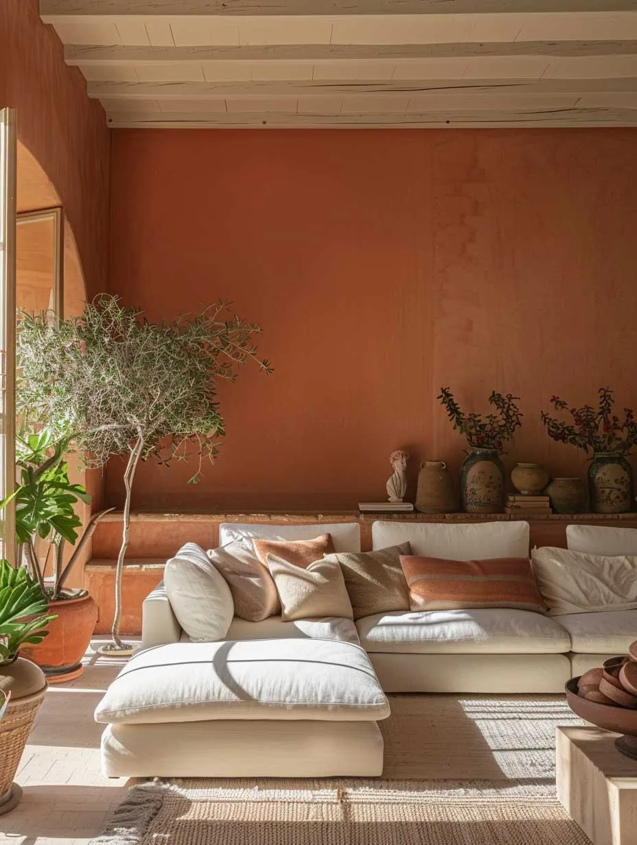 The integration of terra cotta into a sunlit living room’s design not only achieves a visually stunning space but also fosters an environment that is inherently comforting and grounding. This design choice reflects a desire for authenticity and connection to the natural world, creating a space where moments are shared, and memories are made.