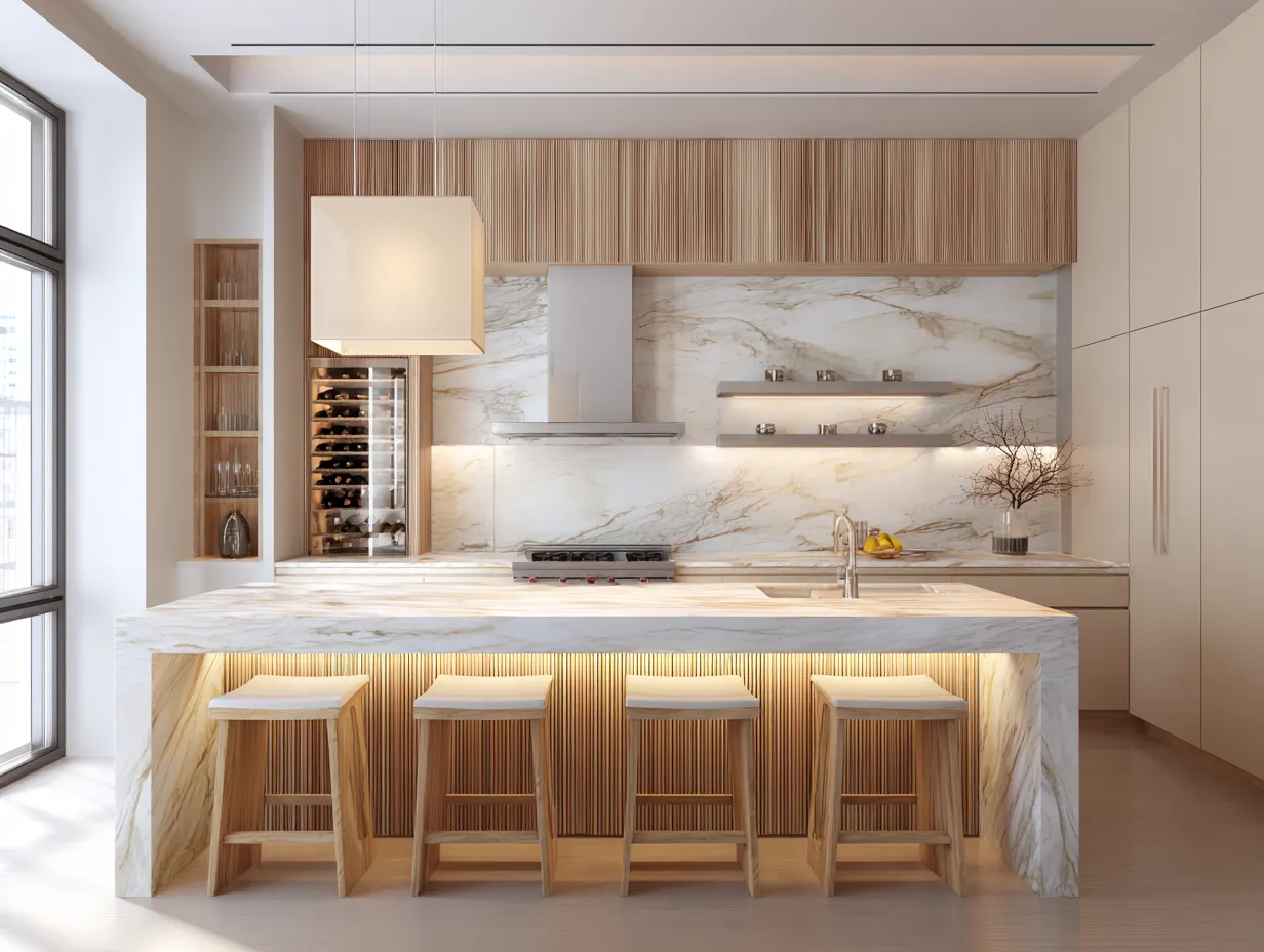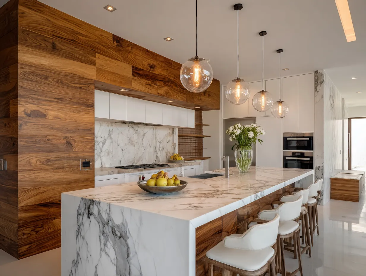 In modern kitchen renovations, interior wall paneling design ideas like this serve both visual and acoustic purposes. The natural material helps absorb sound and create a more serene atmosphere, ideal for open-concept spaces. Whether paired with minimalist furnishings or layered with linen and ceramics, this style remains timeless. Embracing these types of interior wall paneling design ideas ensures your kitchen is as visually appealing as it is functional. Scandinavian wood tones continue to influence many of today’s most desirable kitchen aesthetics.