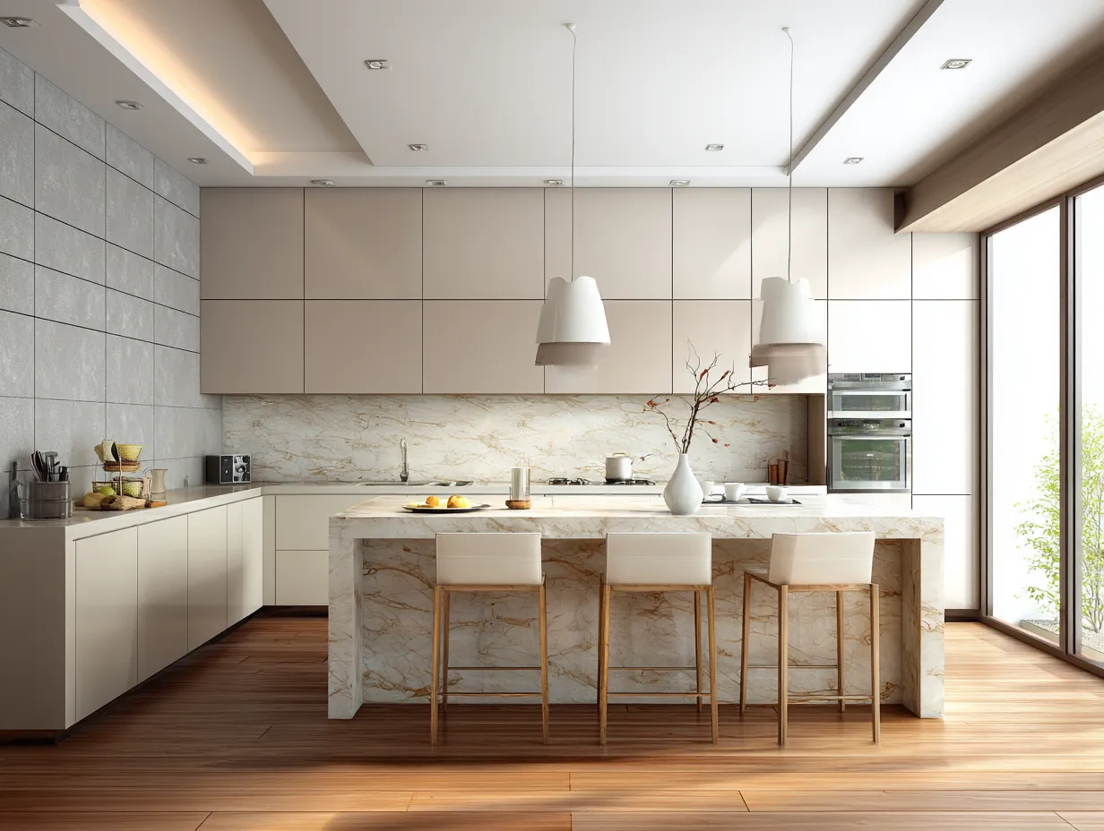 Among interior wall paneling design ideas, terrazzo stands out for its versatility. It can be subtle with white marble and grey chips or adventurous with multicolored aggregates. When used as panel insets between smooth cabinetry, it delivers visual contrast while remaining cohesive. Many contemporary kitchens now favor terrazzo alongside matte surfaces, tying natural stone appeal with engineered cleanliness.