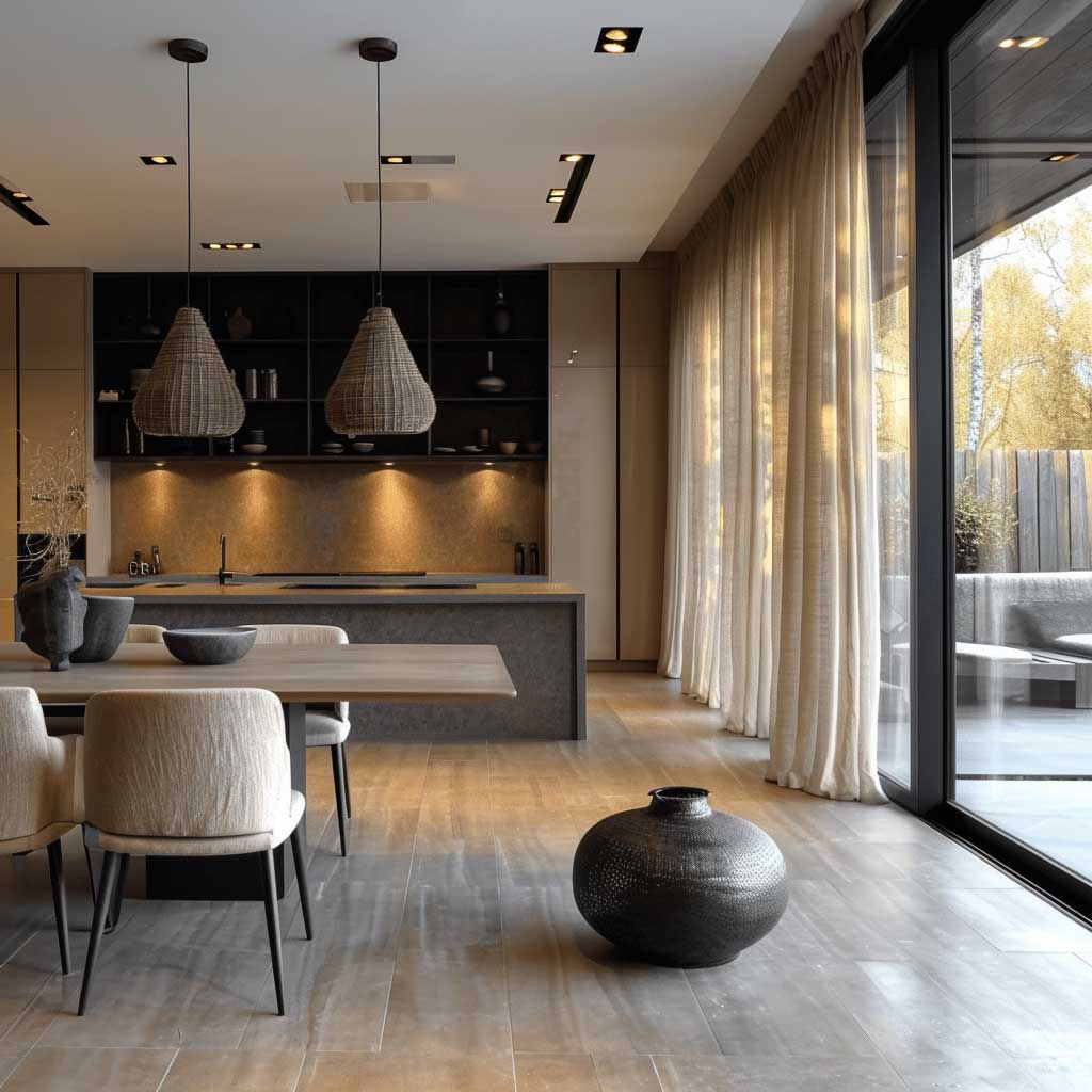 When it comes to dressing the windows of a home that embodies minimalist principles, the goal is to enhance rather than overwhelm the space. Subtle sheer curtains are a perfect solution, offering a light touch of elegance and understated beauty. These window treatments bring a level of sophistication and functionality that is ideal for the minimalist aesthetic, harmonizing with the decor while providing essential light control and privacy.