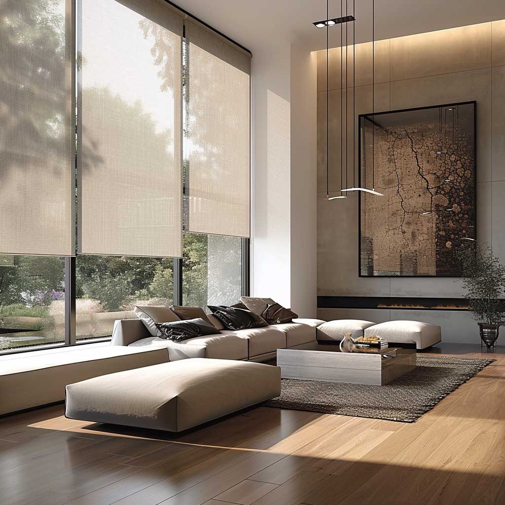 Color and texture play a significant role in the selection of roller blinds for minimalist interiors. Neutral shades like whites, beiges, and grays are popular choices, as they create a sense of calm and continuity. However, for those looking to add a hint of color without overwhelming the space, roller blinds are available in a range of subtle hues that can gently enhance the room’s color palette.