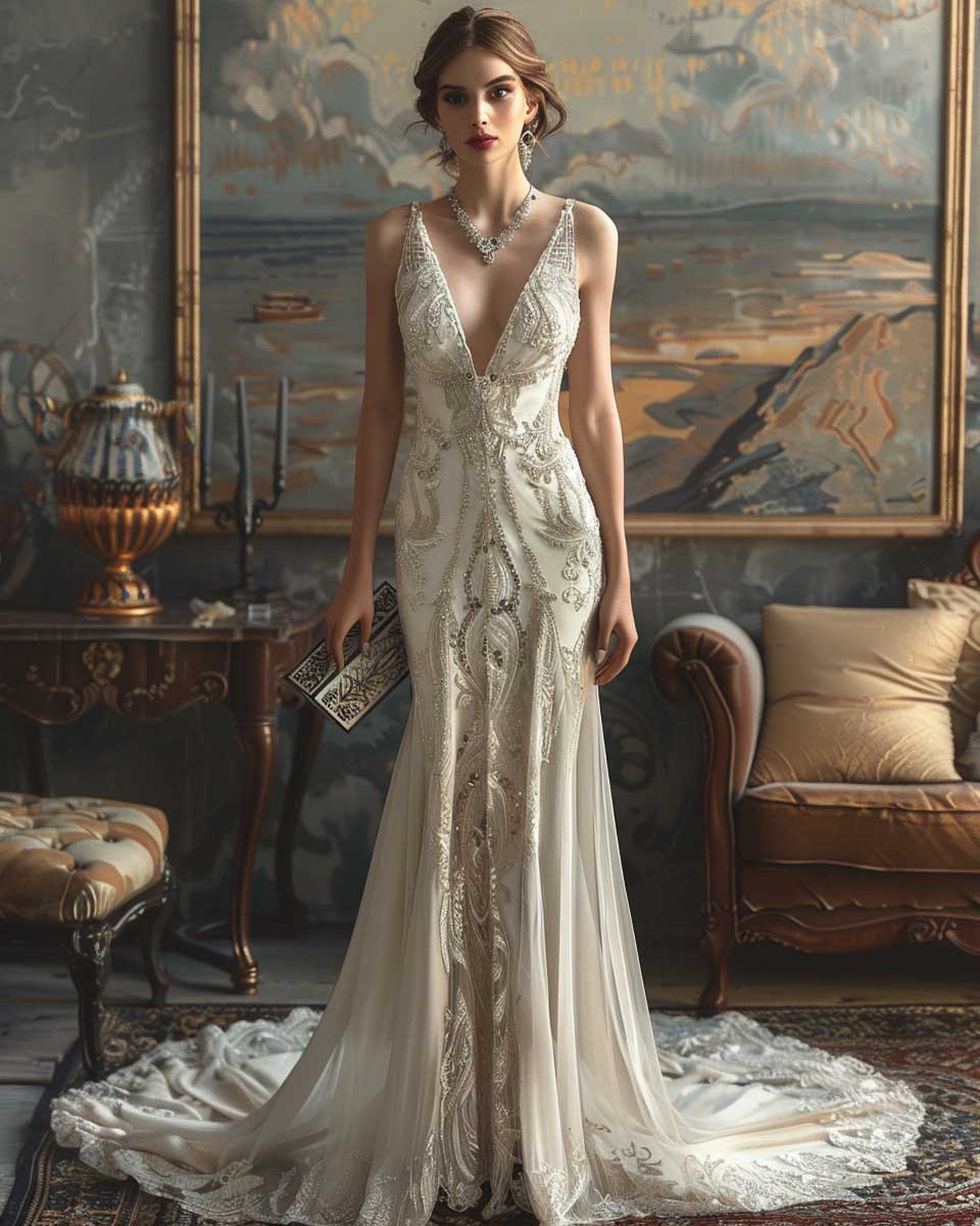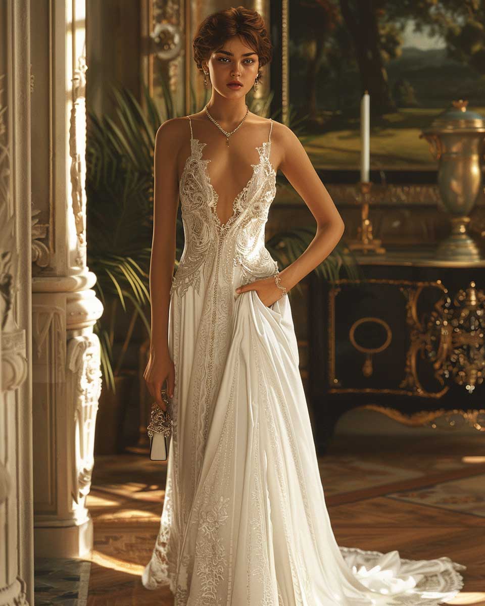 As the sun dips below the horizon and the sky transitions from pastel hues to a deep twilight, the evening beckons with its promise of elegance and mystery. For those special nights that demand a touch of sophistication, chic white outfit ideas stand out as the beacon of refined style. Envision an ultra-photorealistic portrayal of a model, the embodiment of grace, dressed in an exquisite white evening gown. This isn’t merely a dress; it’s a masterpiece woven with the threads of elegance and sophistication.
