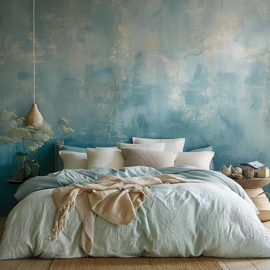 Applying an ombre effect requires patience and a meticulous approach to blending colors. The process typically involves choosing two or three shades of the same color and carefully blending them on the wall to create a seamless transition. This technique can add depth and texture to the wall, making it a striking feature of the bedroom.