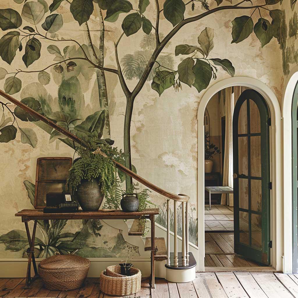 Eco-Inspired Elegance: Greenery in Hall Wallpaper