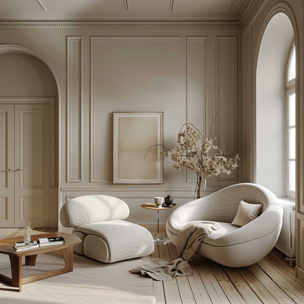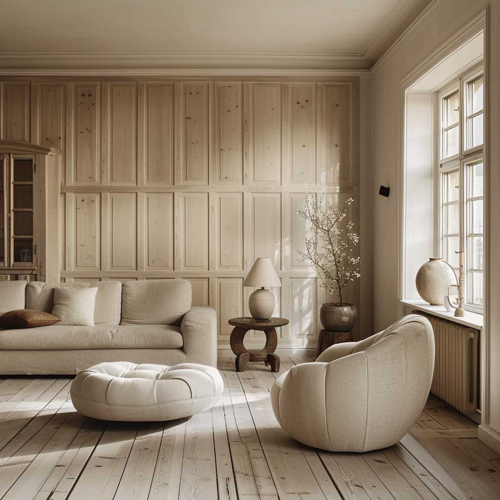The allure of a living room adorned with soft pastel wall panelling lies in its ability to evoke a sense of lightness and purity. This design choice reflects a desire for a living space that not only looks beautiful but also feels warm and welcoming. It’s a testament to the power of color and simplicity in transforming a room into a haven of tranquility, where the stresses of daily life can be left at the door. In this light-filled sanctuary, moments of peace and relaxation are not just possible; they’re a natural part of everyday life.