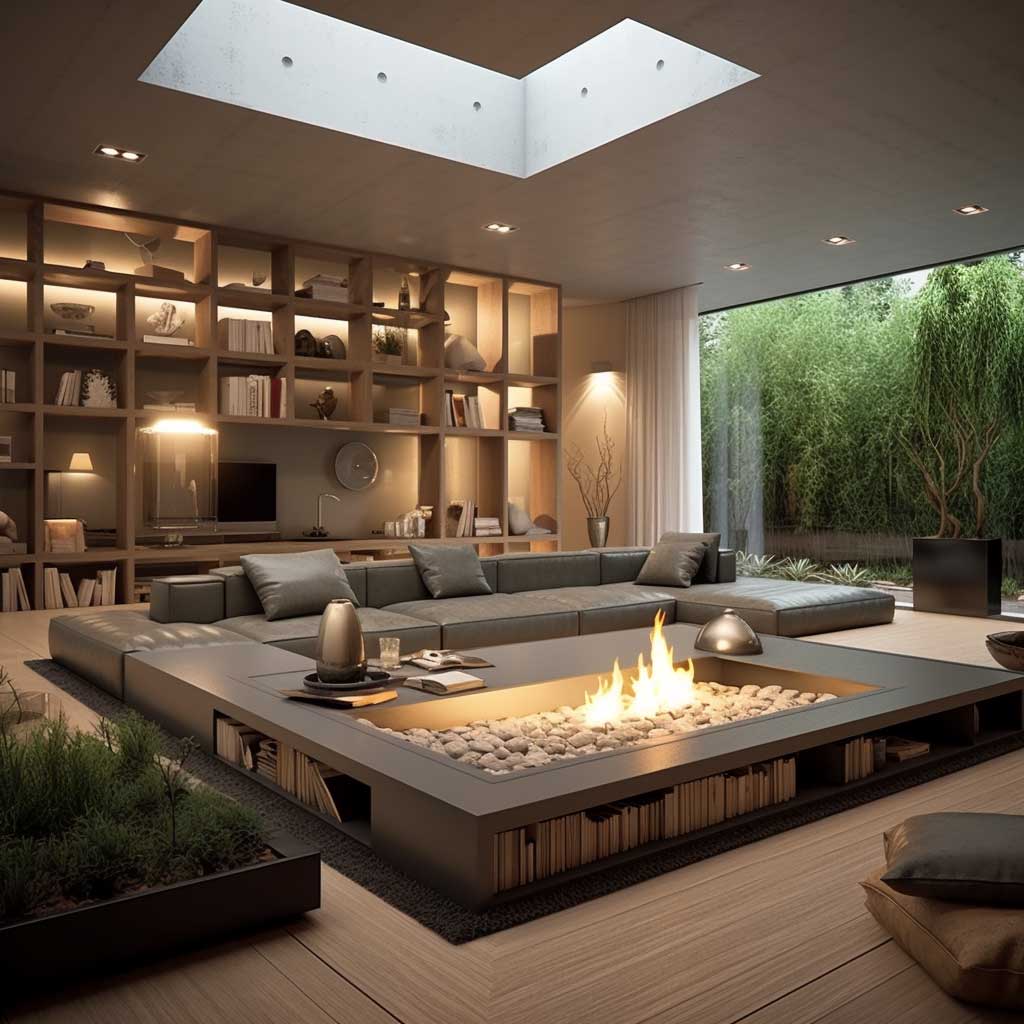 Innovative sunken living rooms are all about pushing boundaries. The use of space is imaginative, often incorporating multifunctional elements like built-in shelves or convertible furniture. This approach not only saves space but also adds a unique aesthetic appeal.