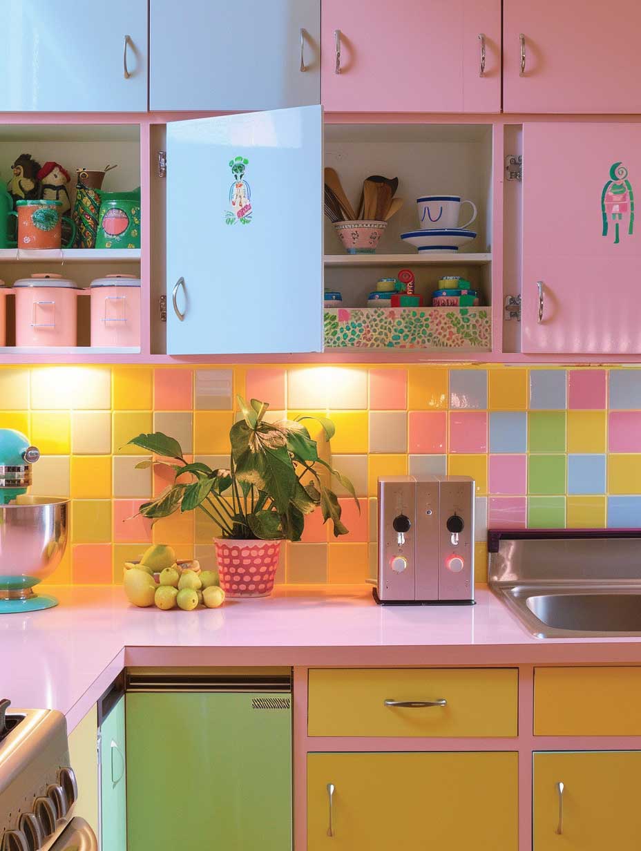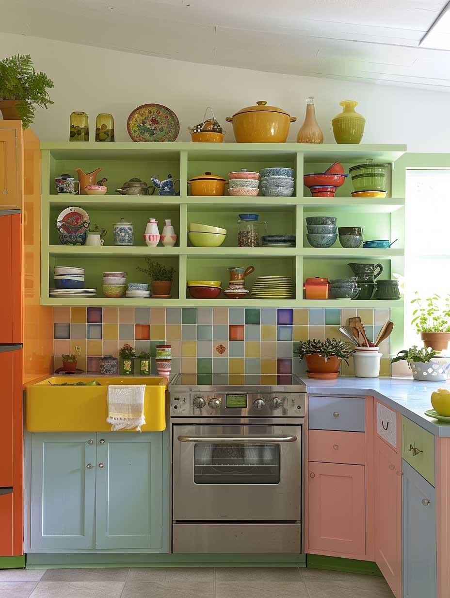Incorporating a bright and playful backsplash can tie the room together, serving as a visual centerpiece that complements the colorful cabinets. Tiles in geometric patterns or hand-painted designs can add character and depth to the kitchen, making it a true reflection of your personal style. This element not only enhances the aesthetic appeal but also offers a practical solution for protecting walls from splashes and spills.