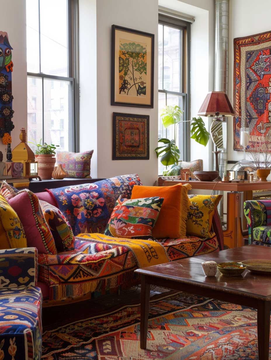 Decorative items and accessories are the finishing touches that tie the entire space together. Vibrant rugs with bold patterns can anchor the room and define different areas within an open-plan space. Wall art, whether it’s a large-scale painting or a collection of smaller pieces, adds personality and color. Decorative items like vases, candles, and books bring layers and textures, making the living room feel lived-in and cozy.