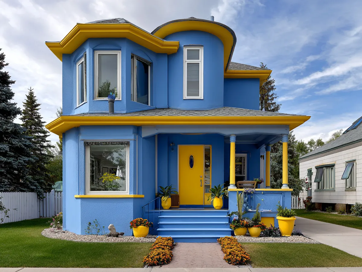 Choosing the right exterior paint colour combination is crucial for enhancing the aesthetic appeal of your home. A well-chosen colour scheme can transform your home’s appearance, making it stand out in the neighborhood or blend seamlessly with its surroundings. One bold and dynamic choice that has been gaining popularity in recent years is the vibrant blue and yellow contrast. This striking and energetic exterior paint colour combination adds a touch of energy and cheerfulness to your home’s facade.