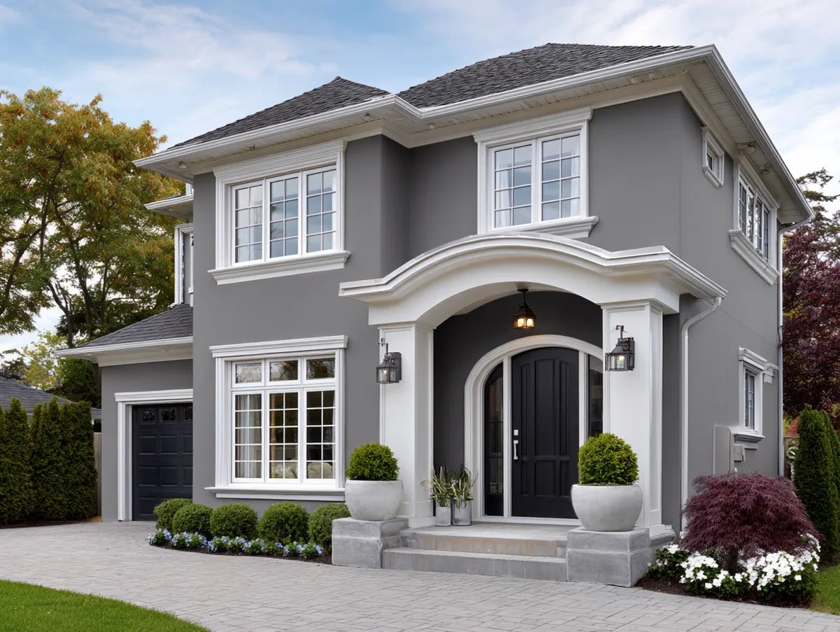 When it comes to choosing the specific shades of grey and white for your home’s exterior, there are a few options to consider. One option is to choose a light grey for the main colour of your home and a crisp white for the trim. This creates a clean and simple look that is both timeless and sophisticated. Another option is to choose a darker grey for the main colour of your home and a soft white for the trim. This creates a more dramatic and moody look that is still elegant and sophisticated.