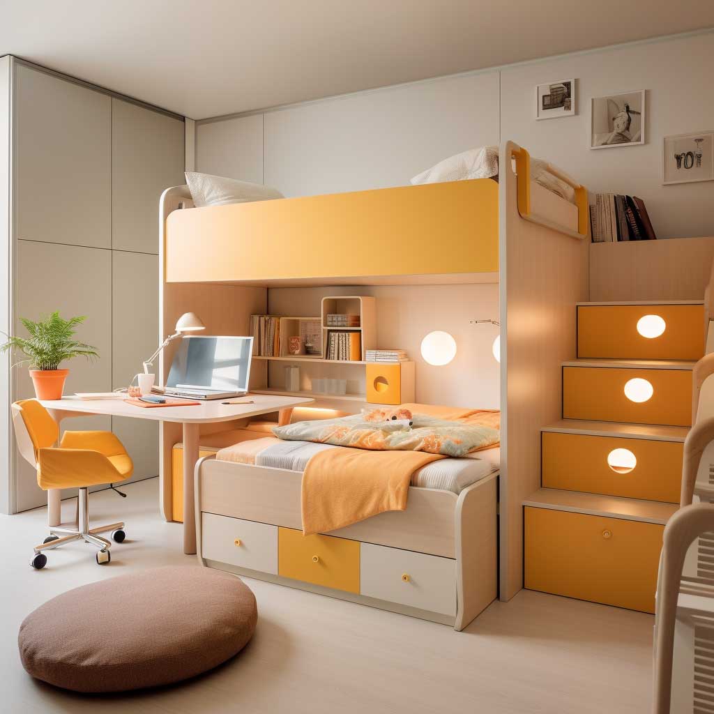 A key aspect of multifunctional design is flexibility. Furniture that can be easily moved or reconfigured allows the room to adapt to different needs and activities. This adaptability is particularly important in a child’s bedroom, where the space might need to change as they grow and their needs evolve.