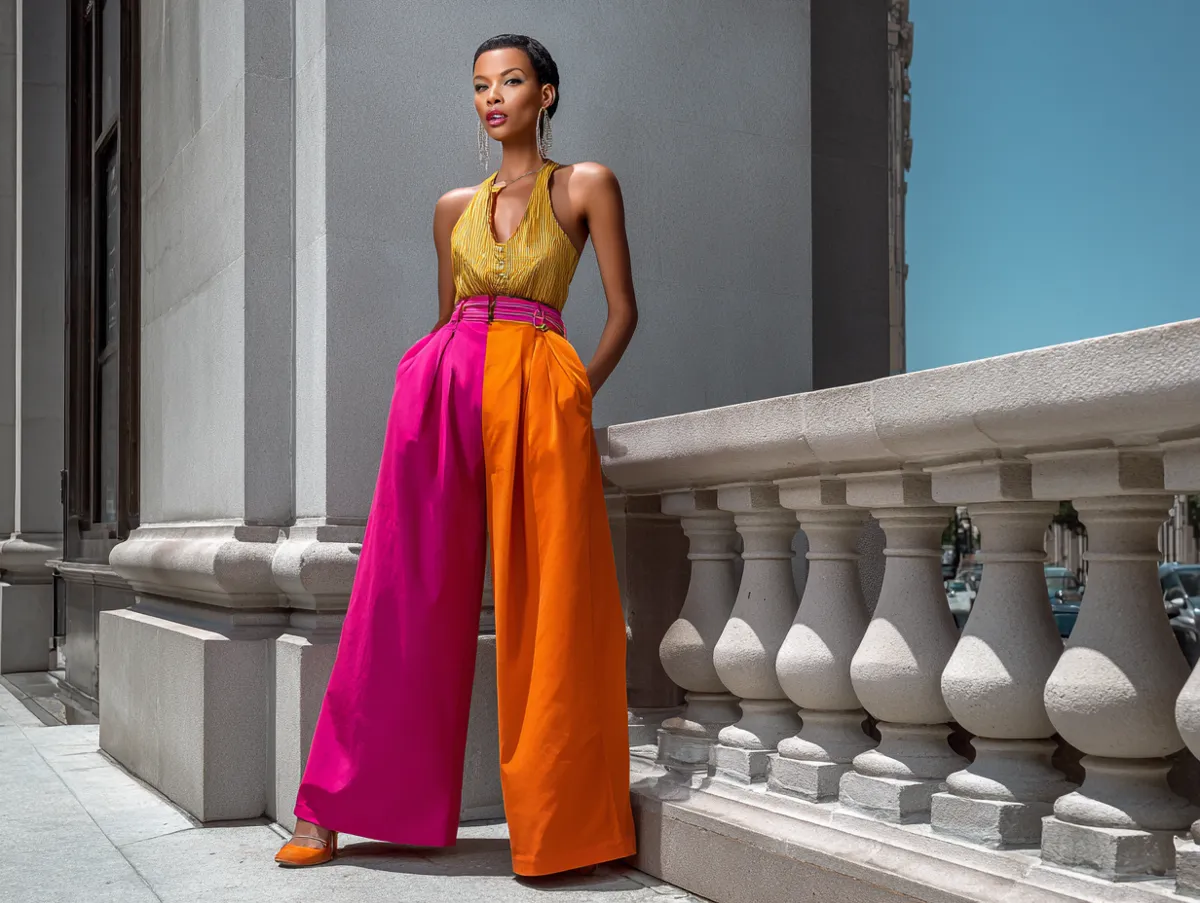 This approach to styling thrives on confidence. The key is precision. Each hue must have purpose, each line must guide the eye. Wide leg jeans act as both anchor and amplifier, grounding the brilliance of the upper palette. Their structure ensures that even daring colors remain poised, never chaotic.