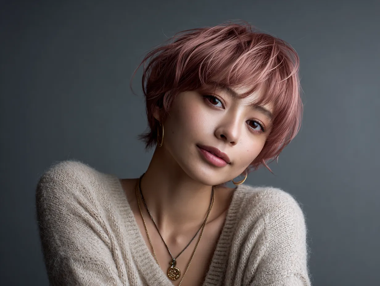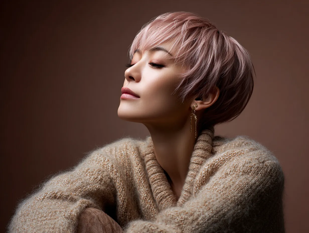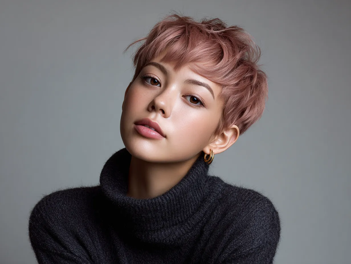 There’s something tender and delicate about soft pixie layers, especially when they’re paired with the warm elegance of rosewood pink. This Japanese haircut focuses on creating subtle movement at the crown and temples, shaping the hair into wispy curves that feel airy yet defined. The goal here isn’t volume — it’s weightlessness. The fine layers let the pixie cut breathe, shifting slightly with every step, giving the wearer a natural sense of lightness.