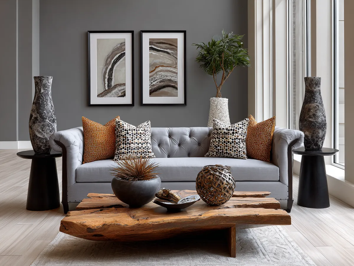 A contemporary fusion is achieved by layering sleek, modern grey upholstery with rustic brown decor artifacts. Choose a grey sofa with clean, minimalist lines to represent modern design, and contrast it with brown wooden pieces that carry history or intricate textures. This "dance of colors" acknowledges your roots while embracing the future. The grey acts as an emotional backdrop—like a foggy city skyline—while the earthy brown reminds you of your connection to nature, resulting in a living space that feels both timeless and forward-thinking.