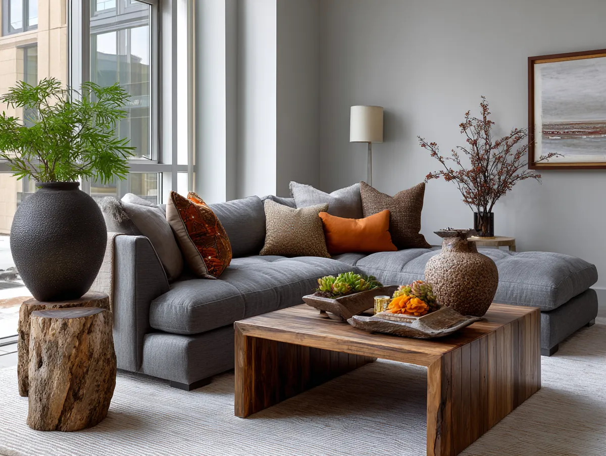 Elegant Modern Grey and Brown Living Room Oasis