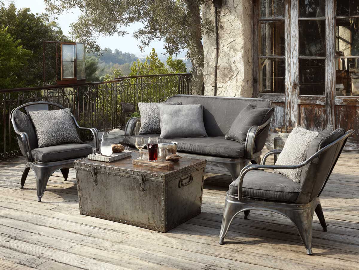 Choosing gray in an industrial context is not about playing it safe. Instead, it brings texture, depth, and versatility to open-air environments. Whether working with weathered steel, polished concrete, or powder-coated metal, gray furniture delivers contrast against greenery while remaining understated. The industrial look thrives on visual tension: hard meets soft, old meets new, structured meets relaxed. When applied outdoors, this tension becomes especially captivating.