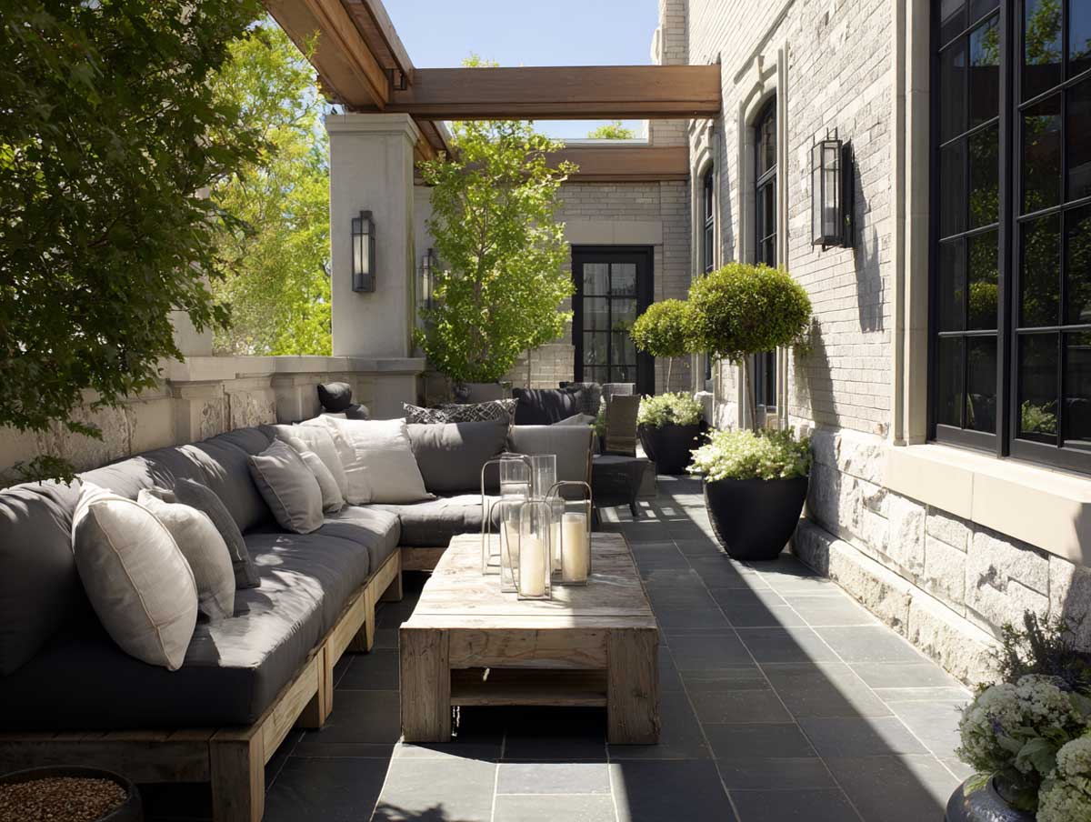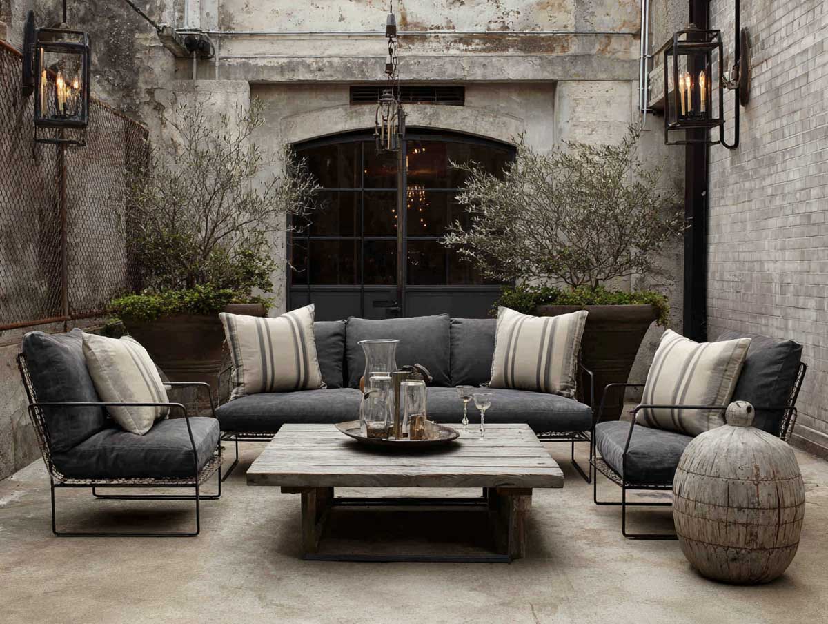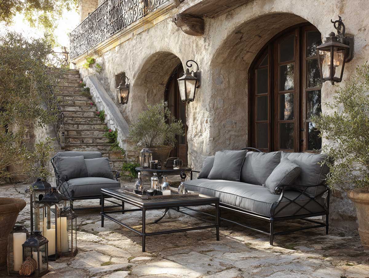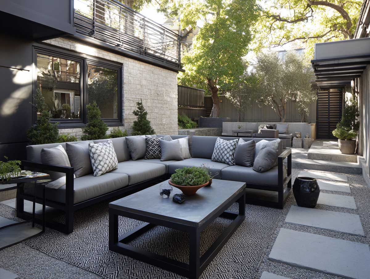 These gray patio furniture design ideas show how the industrial look doesn’t have to be cold or sterile. By integrating tactile materials like wood and stone with sturdy gray steel, the result is warm, layered, and deeply human. It’s a look that matures with time, gaining texture and memory, season after season.