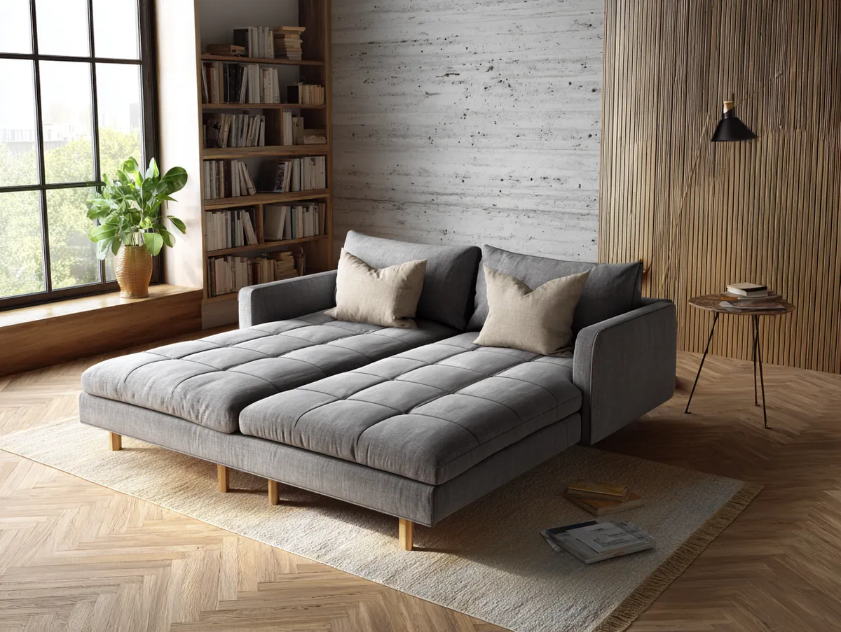 1. Sleek Sofa-Bed Transformation for Day and Night Use