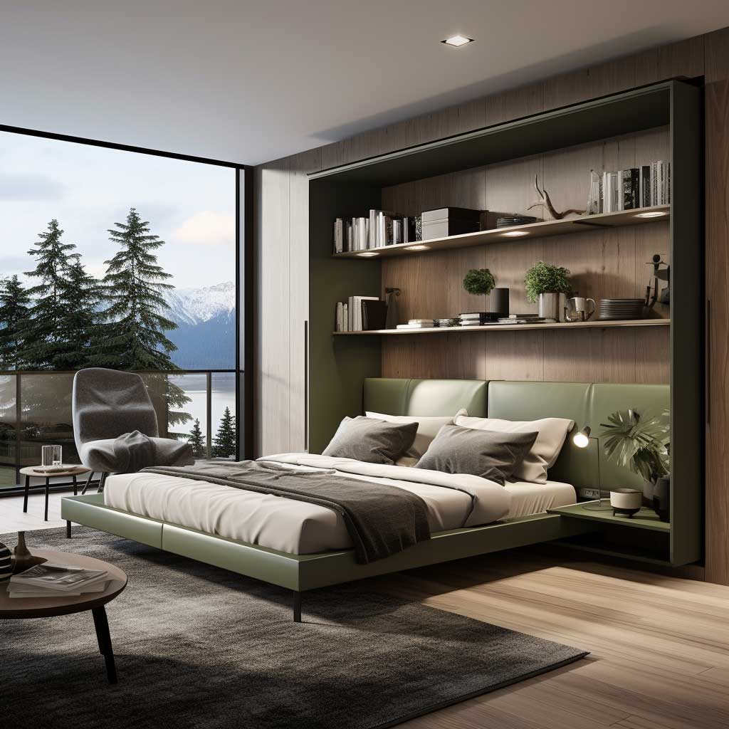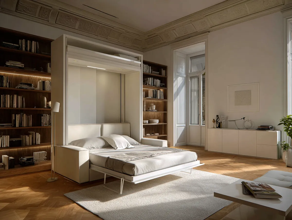 The hidden wall bed, often referred to as a Murphy bed, is a foldable bed that can be vertically stored against a wall or inside a cabinet. When not in use, it remains concealed, freeing up valuable floor space. This feature makes it an ideal choice for homes where space is a constraint.