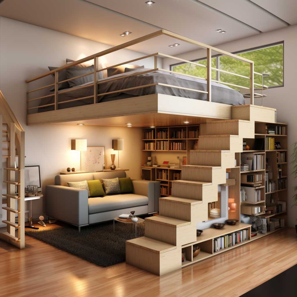 The elevated loft bed over cozy living spaces is a shining example of modern design’s adaptability. It’s a solution that addresses the challenges of urban living, offering both functionality and style. Among the myriad of bed in living room ideas, the loft bed stands out, celebrating the potential of vertical space and the endless design possibilities it offers.