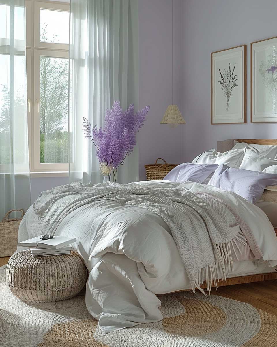 Incorporating light wooden furniture and sheer white curtains enhances the effect, adding layers of texture and warmth that complement the wall colors. The natural wood tones bring a touch of earthiness that grounds the space, while the translucency of the sheer curtains allows for a soft diffusion of light, further amplifying the calming effect of the pastel colors. This interior painting design strategy is about more than just aesthetics; it’s about creating a space that feels like a personal retreat from the world, a place where relaxation and rejuvenation are paramount.