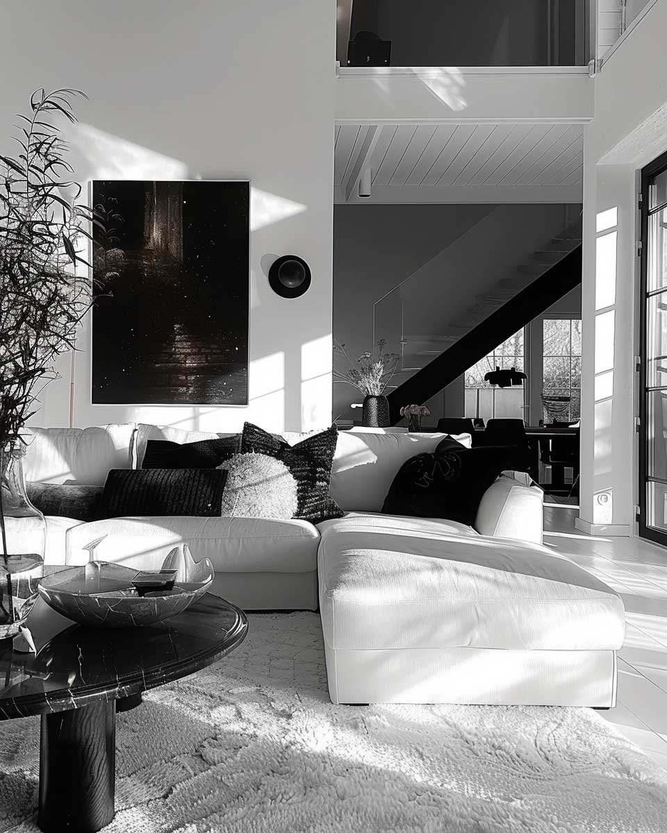 Beyond aesthetics, the monochrome scheme is highly practical. It allows for easy updates and changes in decor without the need to overhaul the color scheme. Adding textures and patterns within the black and white spectrum can introduce depth and dimension, ensuring the space feels warm and inviting despite the stark color contrast. This design approach proves that simplicity does not equate to a lack of sophistication but rather a careful curation of elements that speak to a refined sense of style.