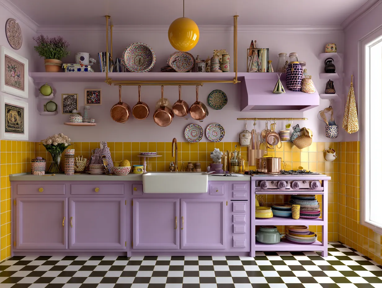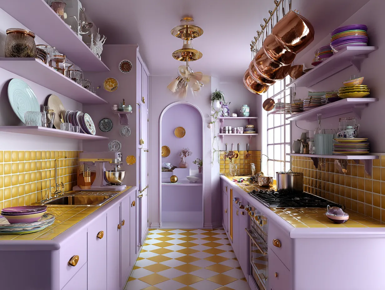 Lavender Purple and Lemon Yellow Kitchen Colour Ideas