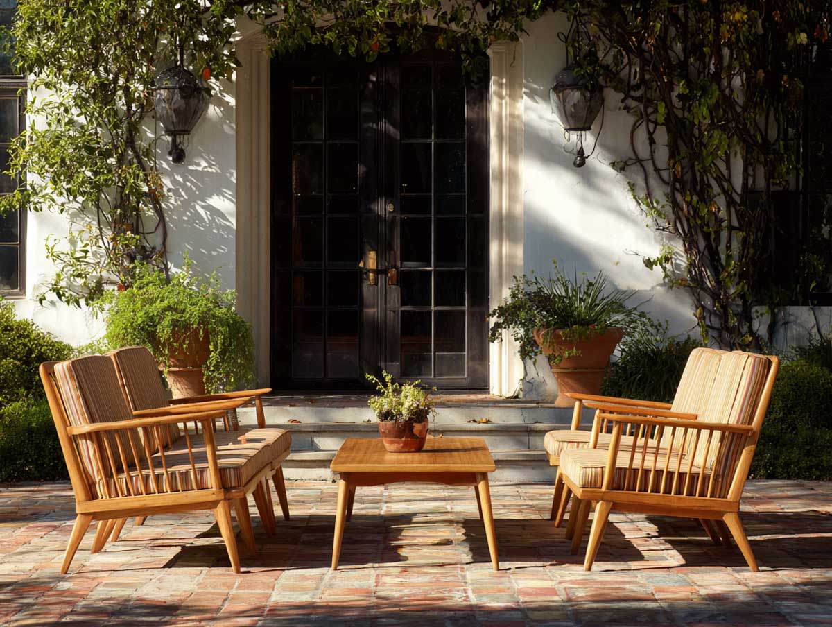 Courtyard Retreat Mid Century Teak Patio Furniture Design Ideas with Concrete Accents