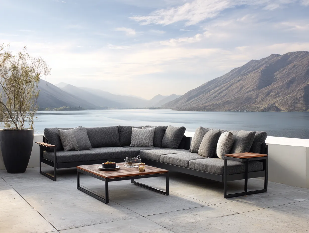 This style of black patio furniture design ideas works best in expansive patios with open views—whether overlooking mountains, fields, or the sea. The backdrop of nature contrasts with the man-made structure, enhancing the furniture’s architectural impact. And because each piece is modular, the design is scalable—from small balconies to vast terraces—making it a universally stylish and functional choice.