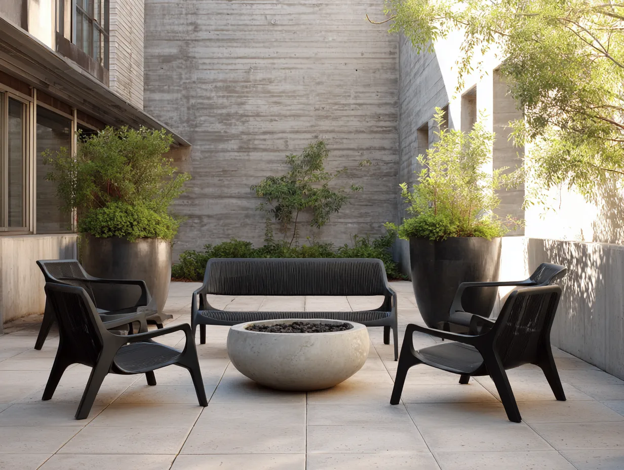 This collection of three creative and unconventional black patio furniture design ideas presents distinct interpretations of minimalism—floating modular elements, sculptural integrations with nature, and futuristic innovations. Each vision brings forward fresh aesthetics that prove minimalist doesn’t mean monotonous. In fact, the black palette becomes a rich backdrop for architectural creativity and elevated outdoor living.