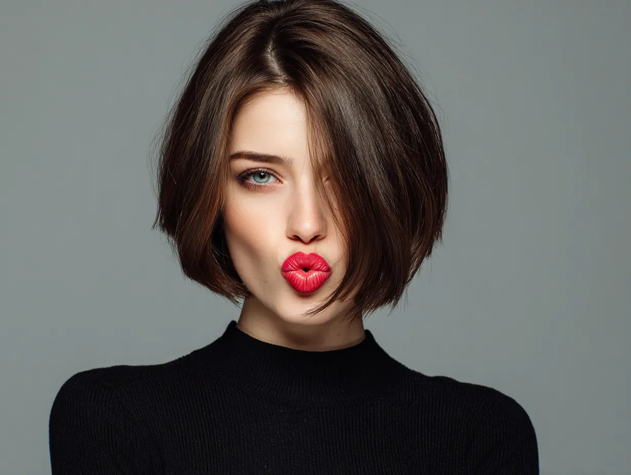In fashion photography, the sleek modern bob haircut is often paired with bold makeup and confident expressions. The simplicity of the haircut allows facial features to stand out, creating a striking visual impression.