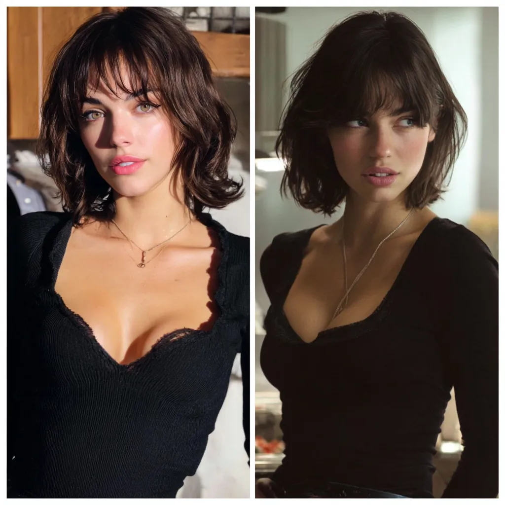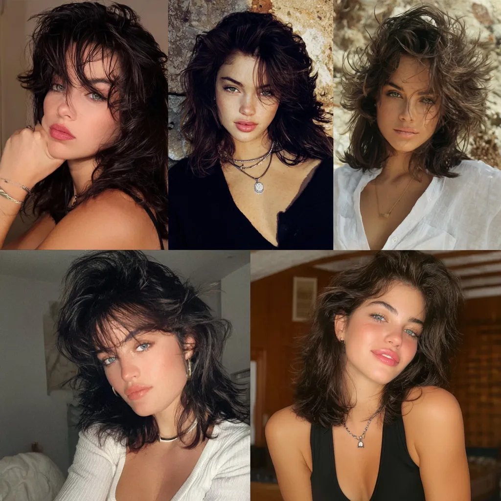 When you observe a woman showcasing these specific modern shag variations, staring forward with a captivating expression under bright, high-contrast lighting, the intricacies of the texture take center stage. The hair does not fall in a single, solid sheet; rather, it breaks apart into hundreds of tiny, distinct ribbons of hair. This level of detailing is achieved through a variety of advanced texturizing methods. Stylists will frequently employ deep point-cutting, snipping vertically into the ends of the hair to shatter the perimeter and create a soft, diffused edge. Furthermore, they may use specialized texturizing shears on the mid-lengths to carve out tiny pockets of space within the interior of the haircut. This invisible weight removal is the secret engine that allows the shorter layers to push the longer layers outward, resulting in that highly sought-after, voluminous expansion.