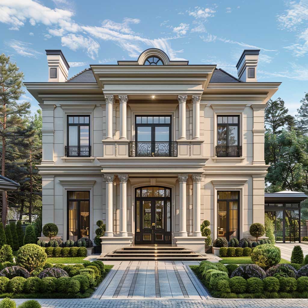 Molding Design for House Front Featuring Symmetrical Modern Classic Lines